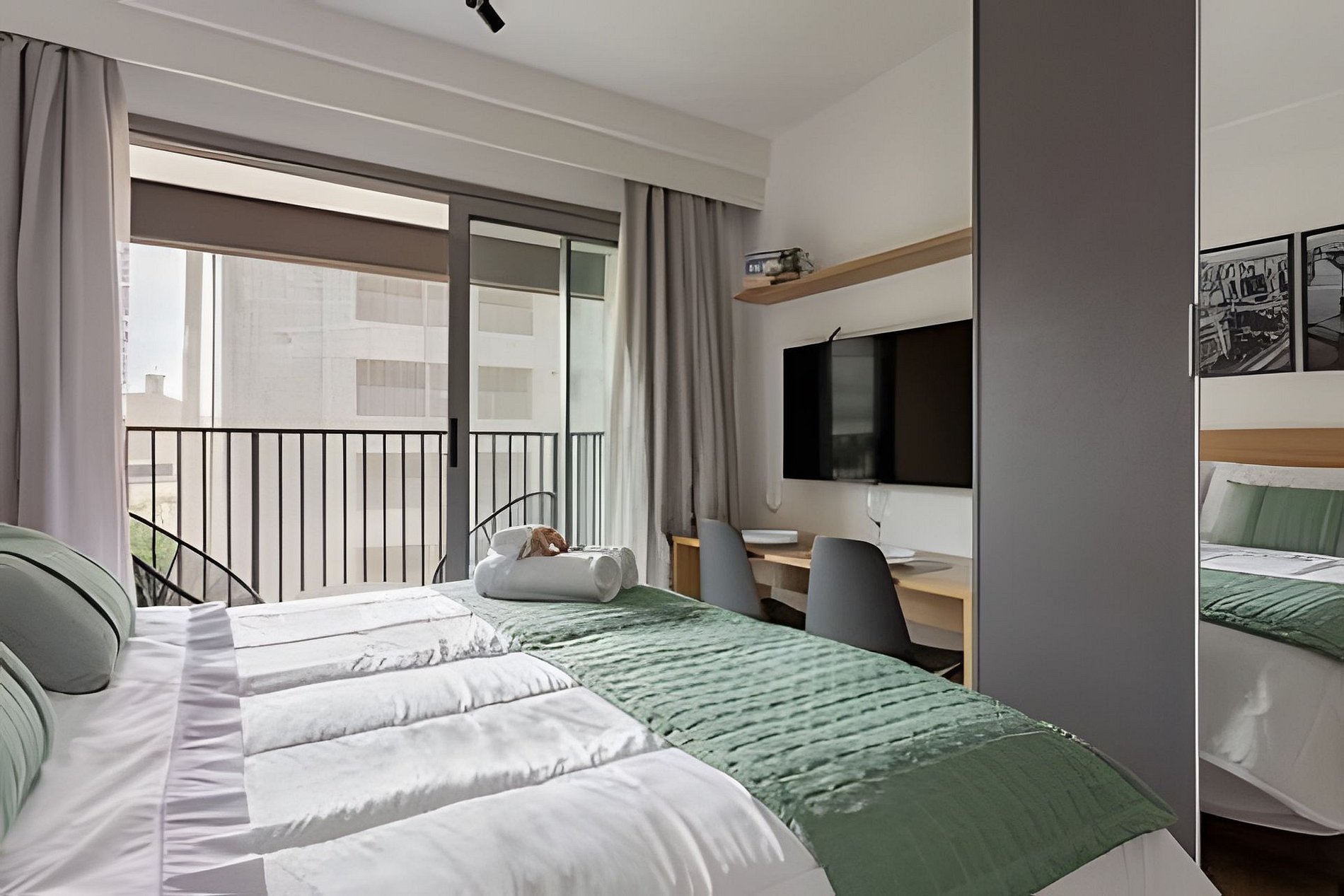 Studio novo bem iluminado e decorado, em andar médio, a apenas 500m do Allianz Parque. Desfrute de uma vista deslumbrante da cidade enquanto relaxa em um espaço aconchegante, equipado, Cama QUEEN, com ar-condicionado, Wi-Fi rápido e cozinha completa. Explore o bairro vibrante com facilidade e aproveite as comodidades do prédio, como Piscina e CoWorking nas alturas, Academia bem equipada, Lavanderia APP OMO e PetPlace Venha para uma estadia inesquecível!