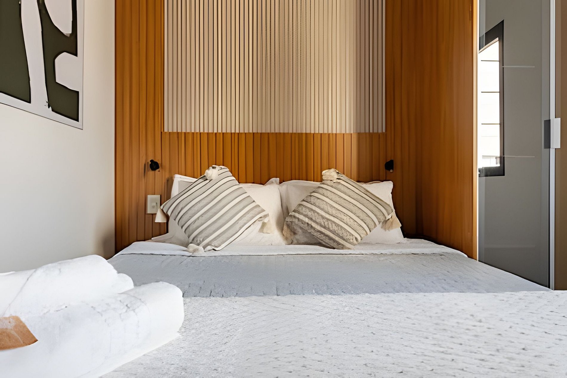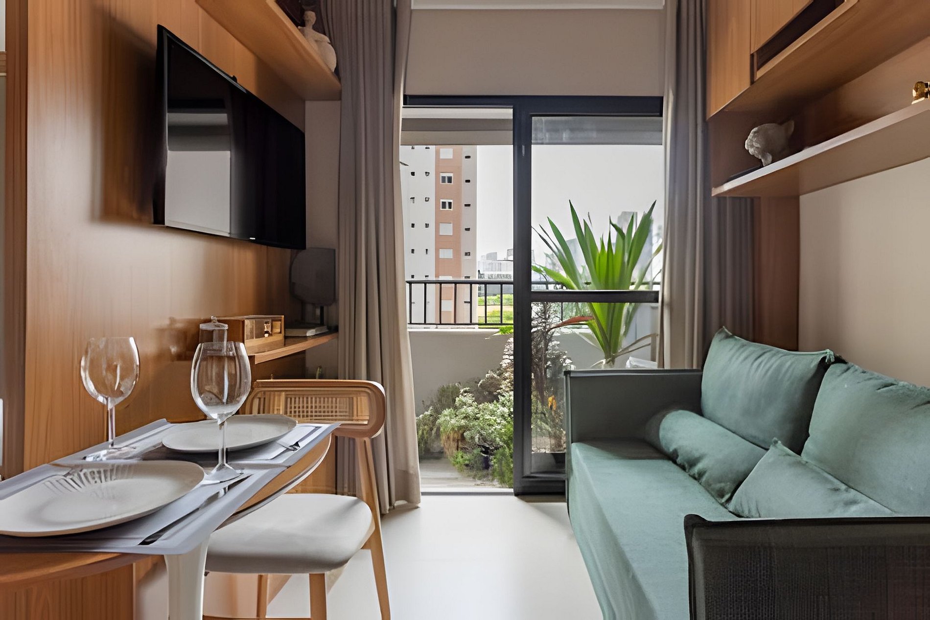 Apartamento moderno, decorado e totalmente equipado, perfeito para até 4 adultos com cama de casal e sofá-cama. Banheiro amplo. Cozinha completa com kit café/chá, estação de trabalho e ar-condicionado. Roupas de cama e banho de alta qualidade. O prédio oferece coworking e lavanderia self-service no 2º andar. Excelente localização, próximo ao Allianz Parque, Bourbon e West Plaza Shopping, Espaço Unimed, Espaço das Américas, Expo Barra Funda e Audio.