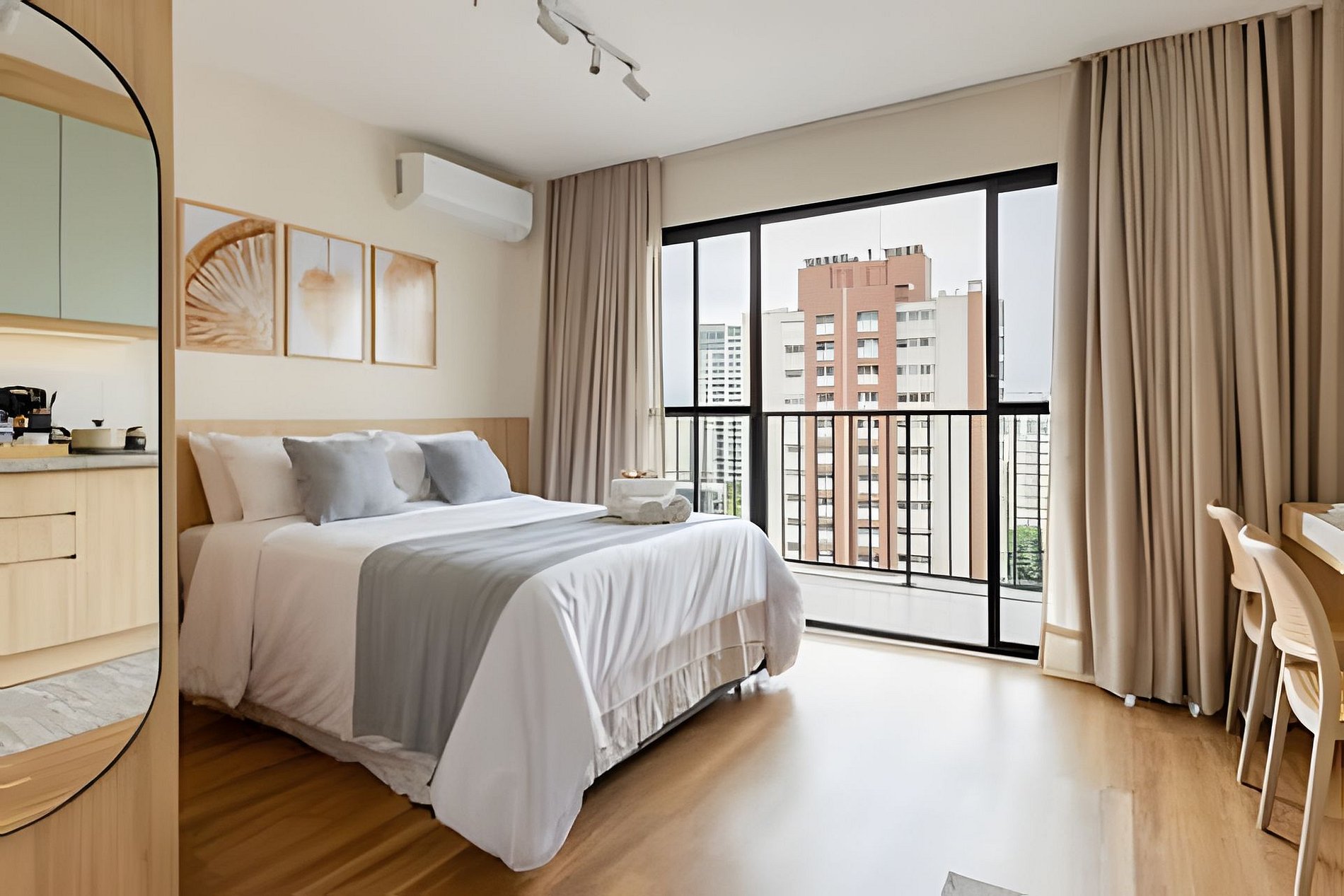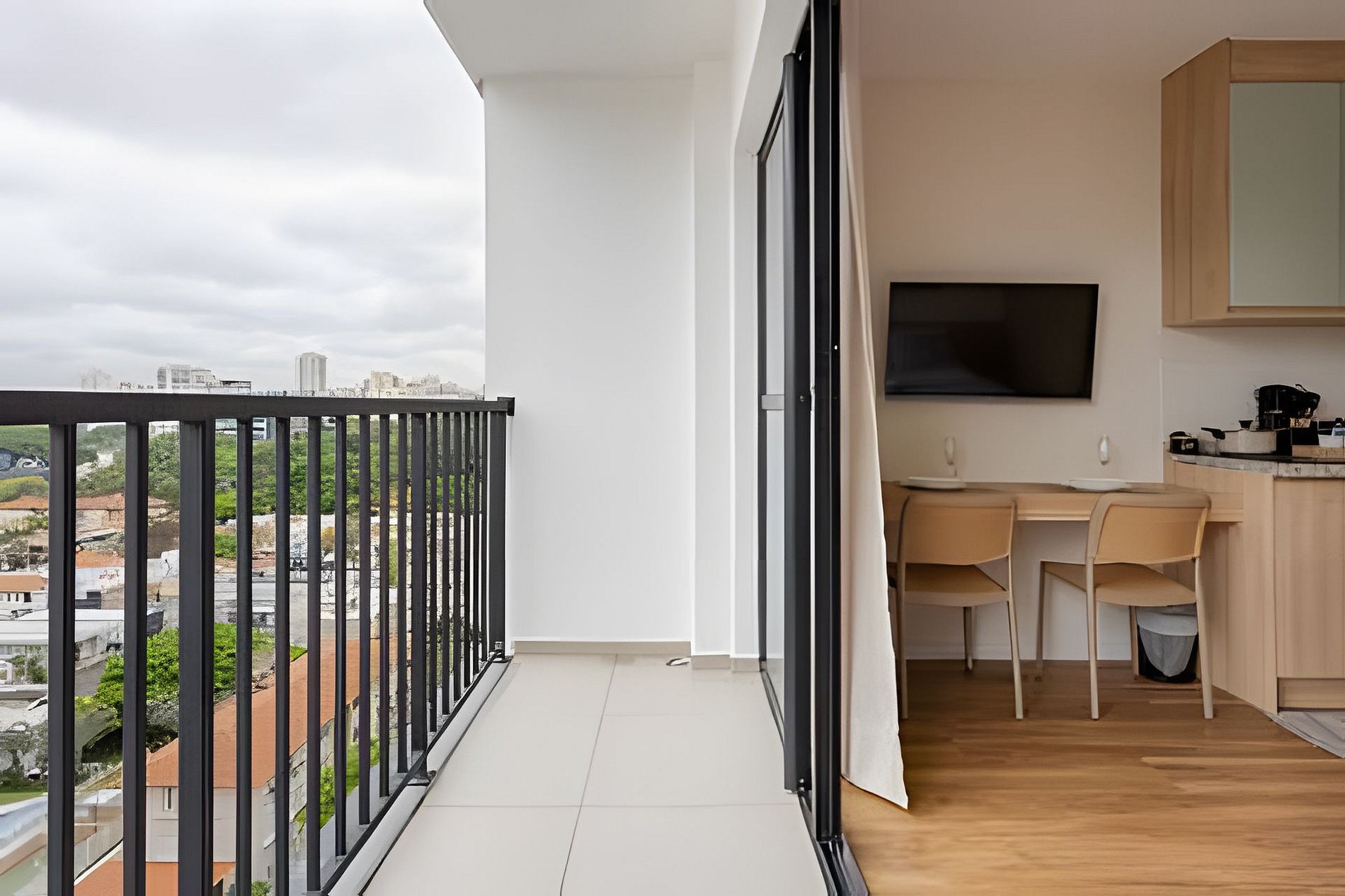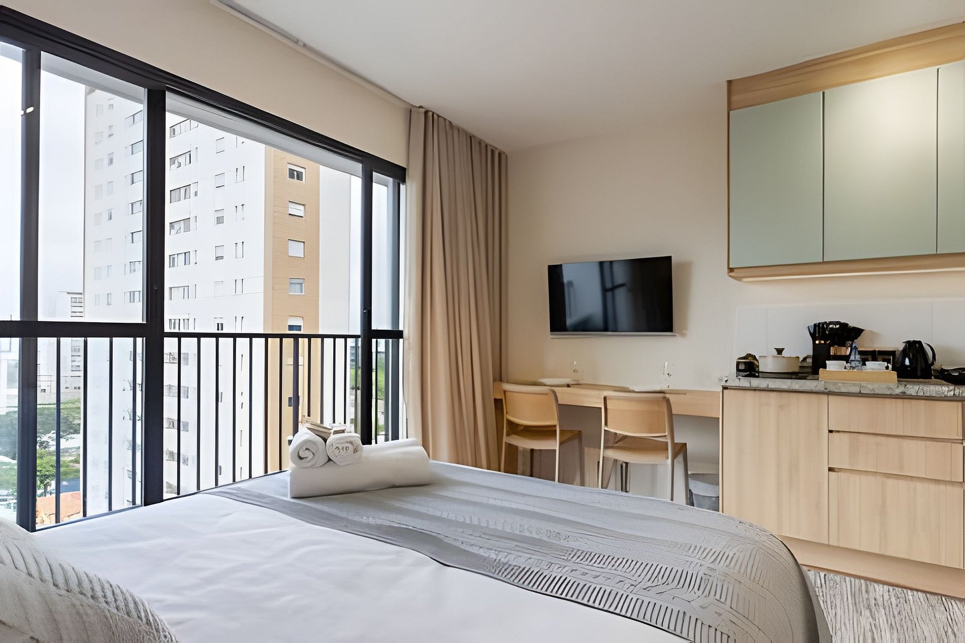 Apto moderno no 10º andar do Bourbon Smart, com cama Casal e uma incrível varanda de vista ampla do Bairro de Perdizes.