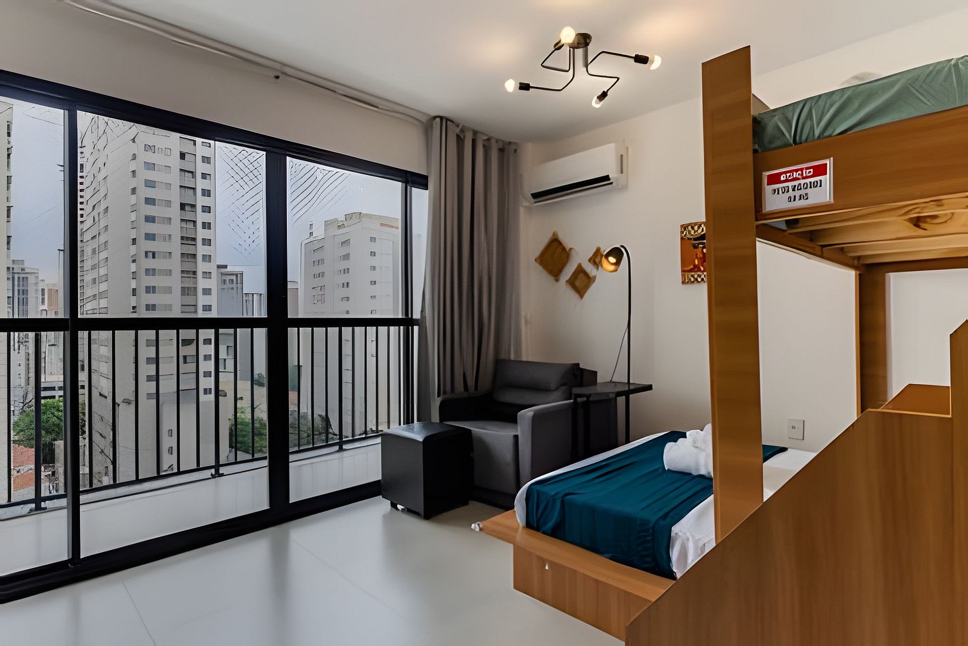 Apto moderno no 13º andar do Bourbon Smart, com cama Casal, Beliche Solteiro e Poltrona-cama-Solteiro , varandacom bela vista do Bairro de Perdizes. Conta com ar-condicionado, Smart TV, Wi-Fi, cozinha equipada, cafeteira, kit café/chá. Acesso à piscina, academia, coworking. Roupa de cama e amenities inclusos. Próximo ao Allianz Parque, Shoppings Bourbon e West Plaza