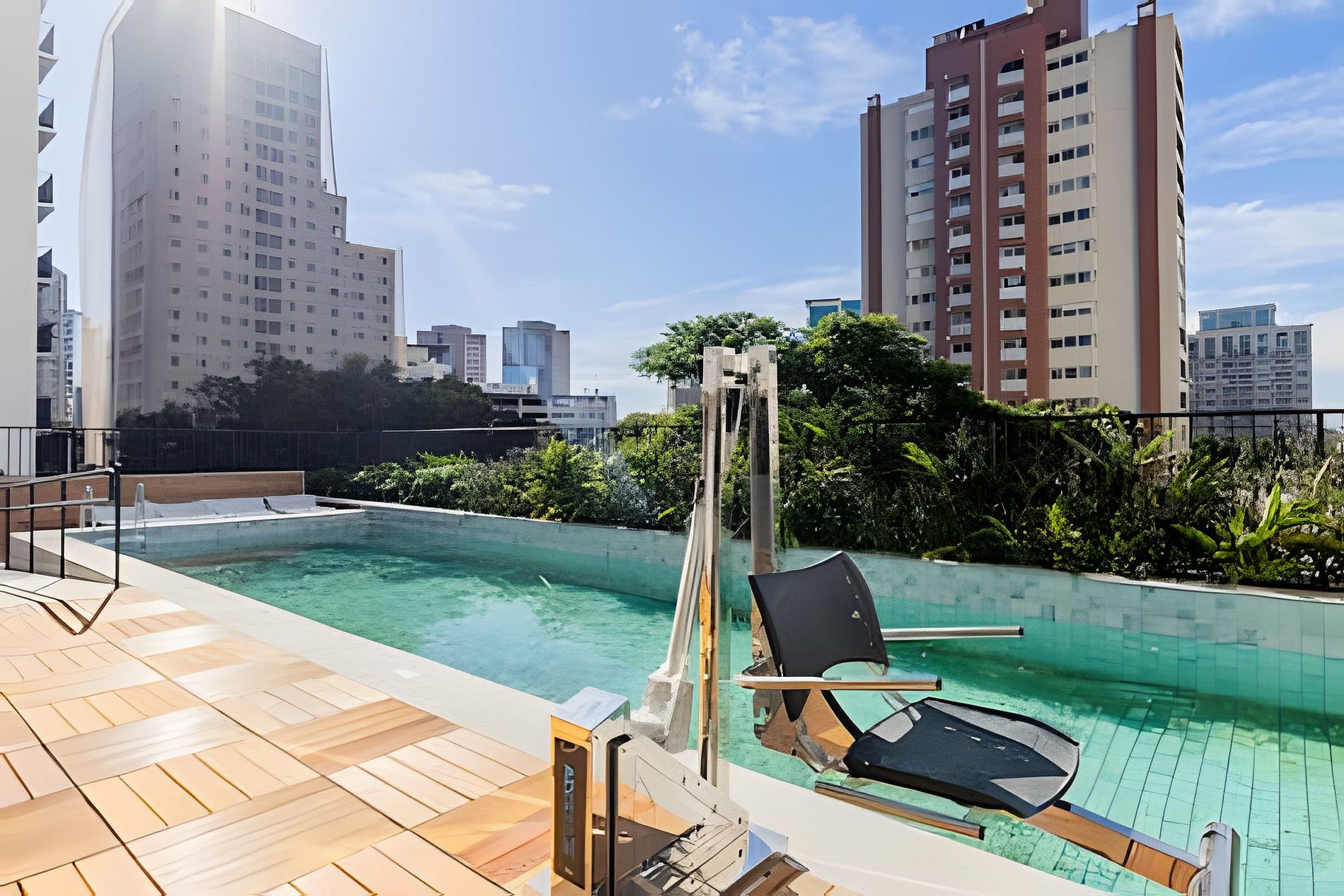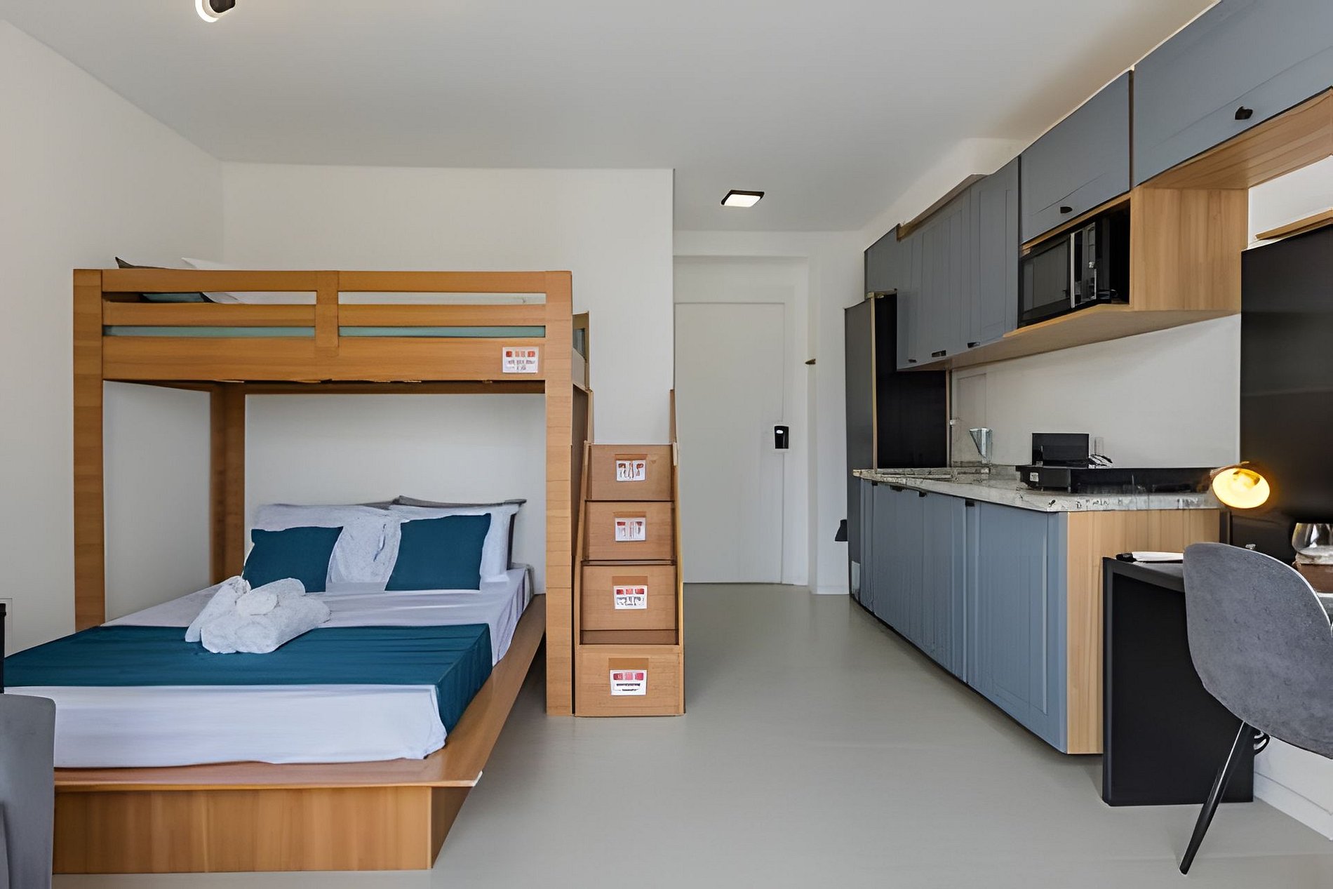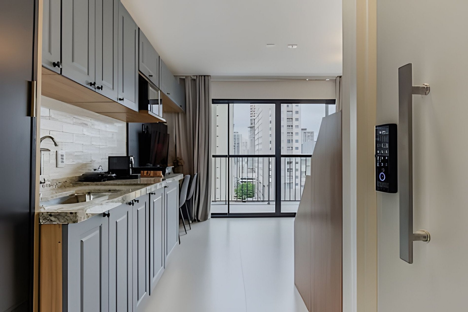 Apto moderno no 13º andar do Bourbon Smart, com cama Casal, Beliche Solteiro e Poltrona-cama-Solteiro , varandacom bela vista do Bairro de Perdizes.