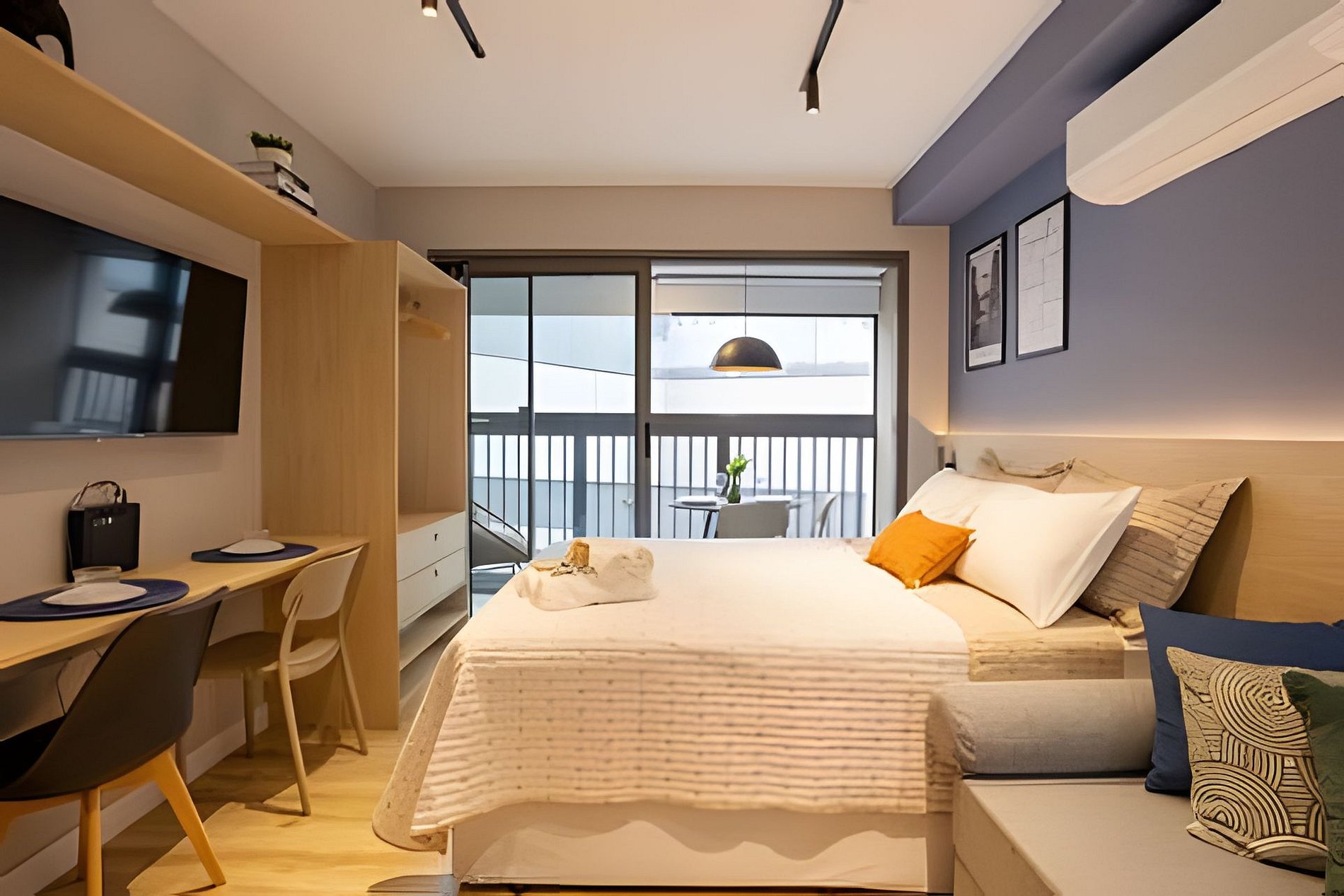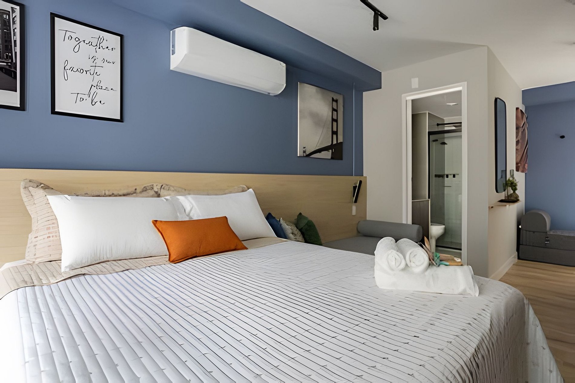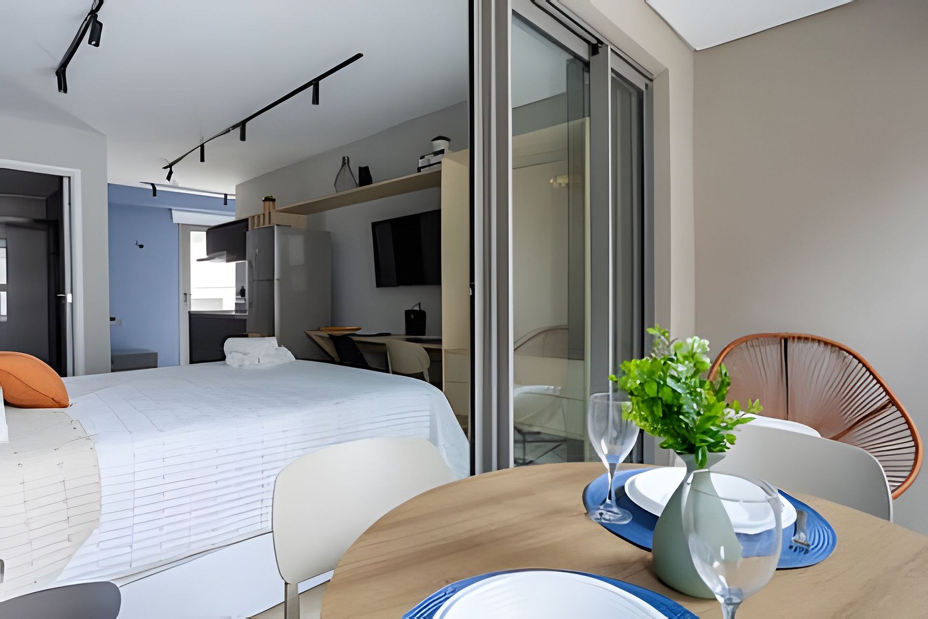 Nosso studio oferece a combinação perfeita de localização e conforto, a apenas 500m do Allianz Parque. Situado em um bairro vibrante, você estará perto de tudo que precisa, desde comércio até opções de lazer. O espaço é acolhedor, com ar-condicionado, Wi-Fi de alta velocidade e cozinha equipada. Aproveite as áreas comuns, incluindo piscina e academia. Traga suas malas e desfrute de uma estadia sem preocupações!
