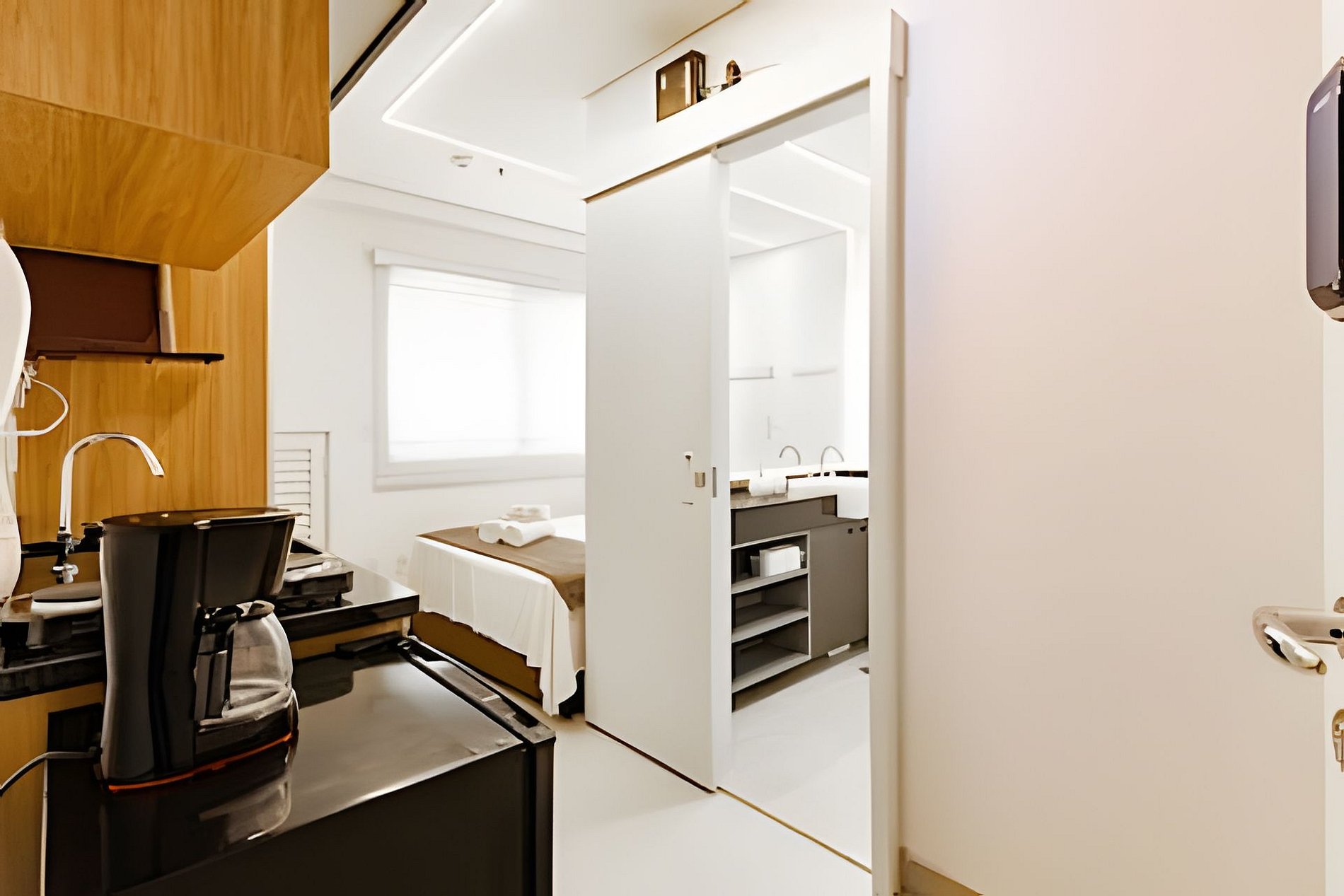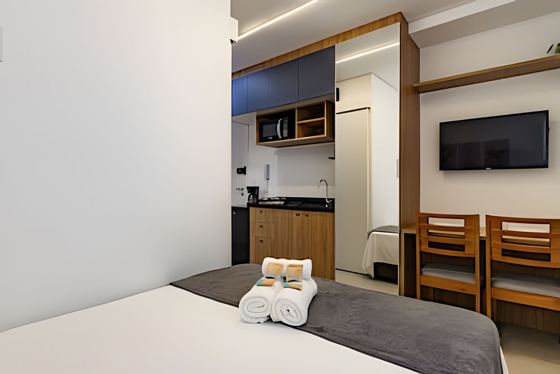 Apartamento studio compacto para viagens business super bem localizado e a 1 km do Allianz Parque Estrutura completa para te receber com muito conforto, segurança, acessibilidade e localização. Ideal para até 2 pessoas. Próximo ao Shopping Bourbon, Smart Fit, Estação de trem Água Branca, Centro de treinamento do Palmeiras e do São Paulo, SESC Pompeia, Memorial da América Latina e Fórum. Será um prazer receber você.