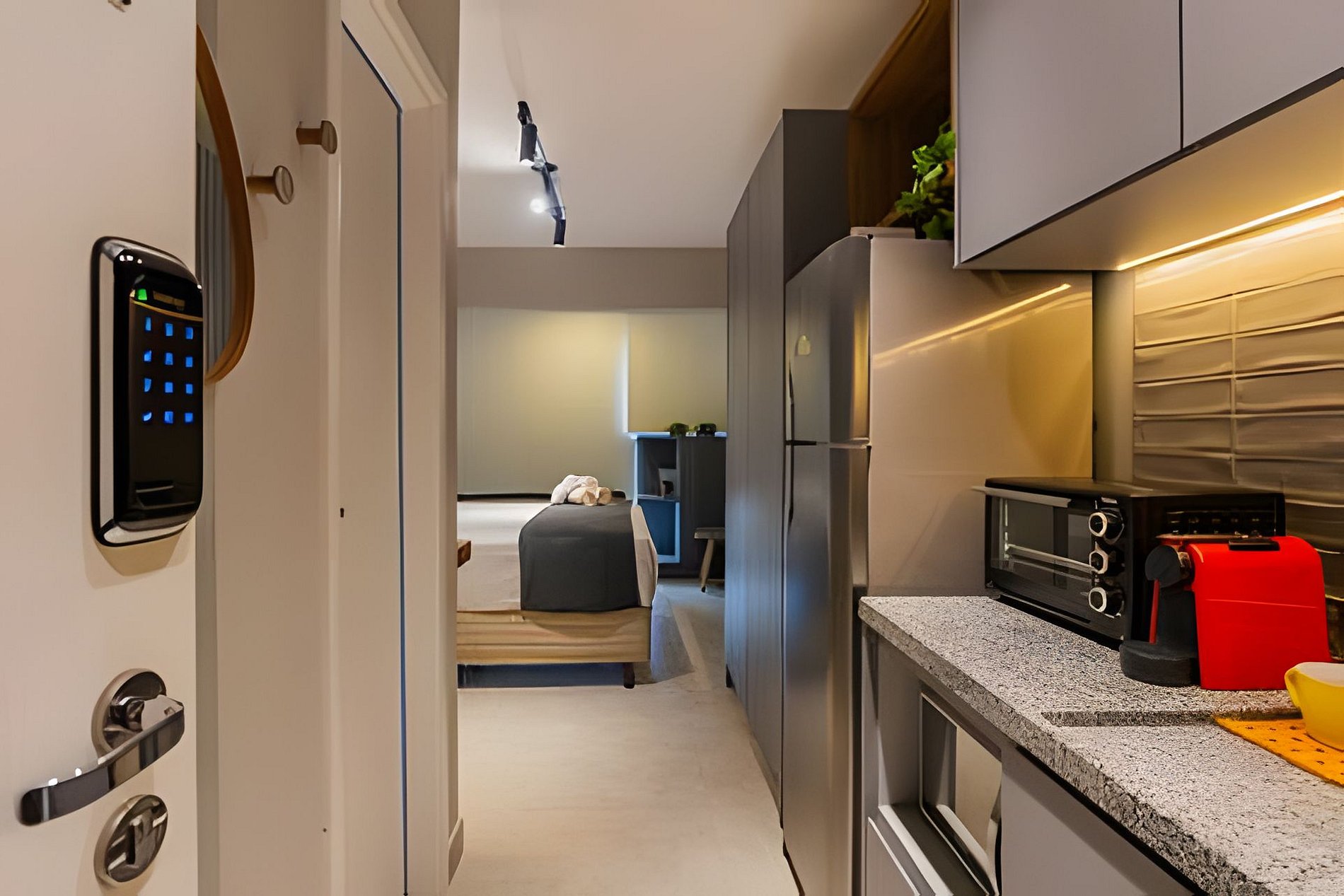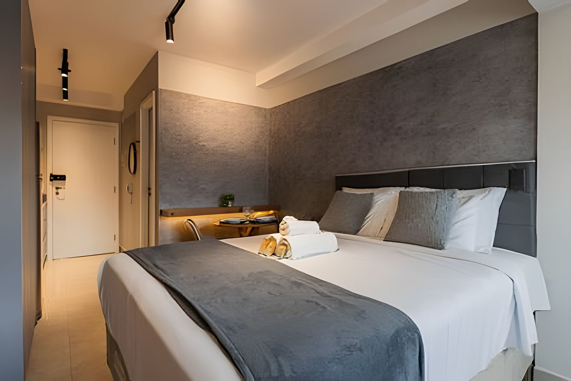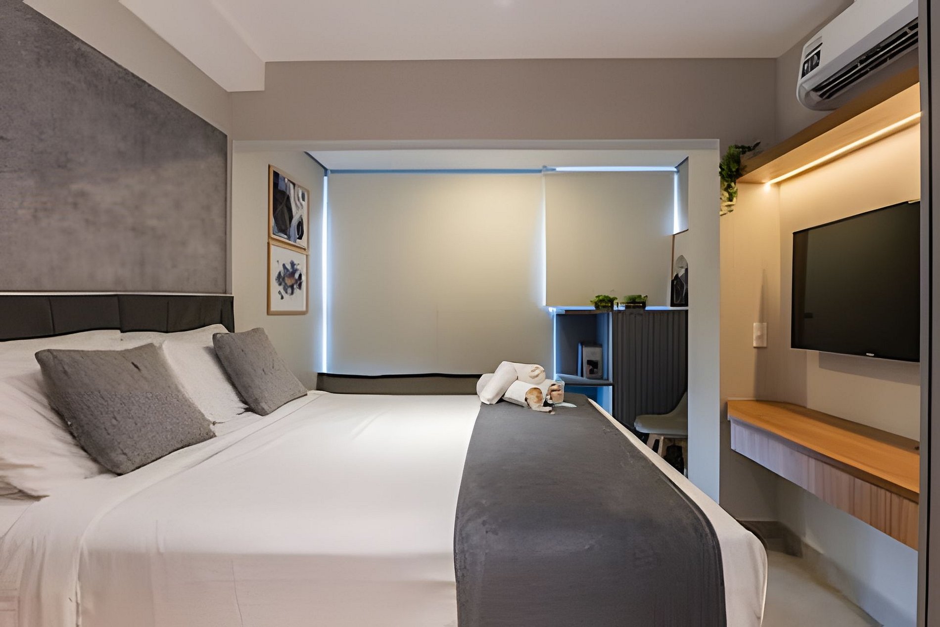 Nosso studio oferece a combinação perfeita de localização e conforto, a apenas 500m do Allianz Parque. Situado em um bairro vibrante, você estará perto de tudo que precisa, desde comércio até opções de lazer. O espaço é acolhedor, com ar-condicionado, Wi-Fi de alta velocidade e cozinha equipada. Aproveite as áreas comuns, incluindo piscina e academia. Traga suas malas e desfrute de uma estadia sem preocupações!