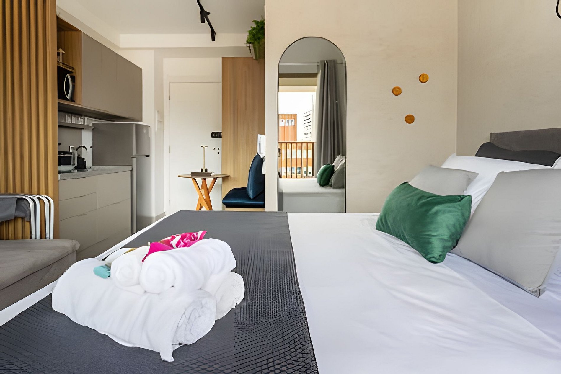 A 300m a pé das estações Paraíso e Ana Rosa, você vive a praticidade de estar perto da Paulista, do eixo hospitalar e dos principais pontos da cidade em um bairro acolhedor. O studio foi pensado nos mínimos detalhes para unir design contemporâneo, funcionalidade e aconchego, criando um ambiente perfeito tanto para estadias rápidas quanto para períodos mais longos. Aqui, cada detalhe convida você a desacelerar, se sentir em casa e aproveitar São Paulo com mais conforto e leveza. Ao entrar em nosso studio, você é recebido por uma atmosfera aconchegante, pensada para que você realmente se sinta em casa desde o primeiro momento. A cozinha compacta é equipada para preparar suas refeições, e a varanda é perfeita para relaxar após um dia na cidade. As roupas de cama macias e os travesseiros de qualidade garantem uma excelente noite de sono. O espaço conta com Wi-Fi de alta velocidade, TV e amenidades para banho, proporcionando uma experiência confortável e sem preocupações. O check-in é 100% online e super prático! Após confirmar sua reserva, você receberá uma mensagem no seu celular. Assim que o cadastro estiver concluído, no dia da sua estadia você receberá as informações de acesso ao apartamento enviadas por mensagem. ⚠️Importante: O envio dos documentos é obrigatório para garantir sua liberação no prédio e o acesso ao apartamento.