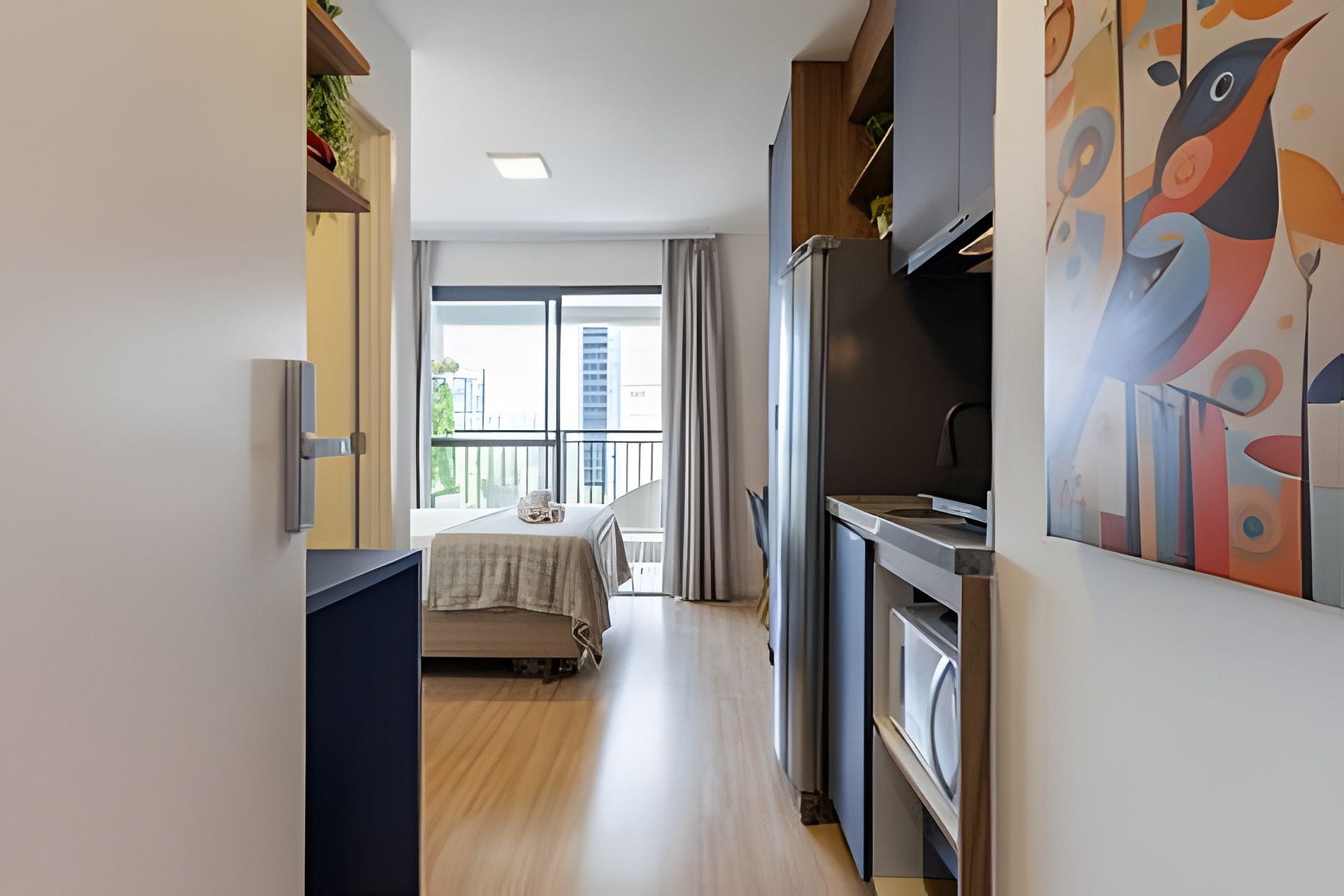 O prédio oferece uma estrutura moderna e sofisticada, ideal para quem busca conforto, praticidade e boa localização. Entre as comodidades disponíveis estão: • Portaria 24h • Piscina ao ar livre • Academia completa • Lavanderia compartilhada • Espaço de co-working • Co-living com cozinha interativa • Mini mercado no condomínio Sobre estacionamento: A unidade não conta com vaga de garagem, porém há um estacionamento 24h a poucos passos do prédio (menos de 200 metros).