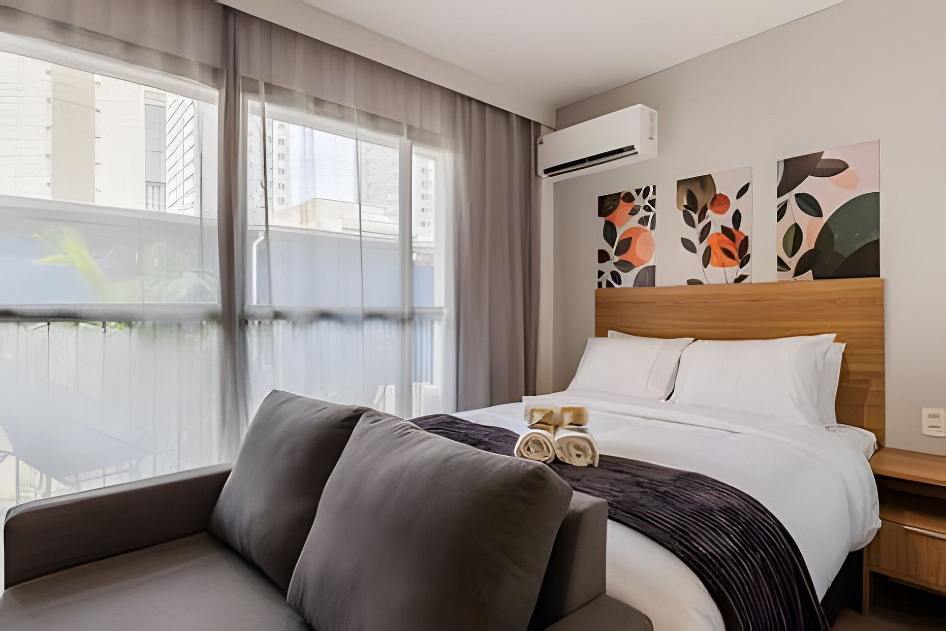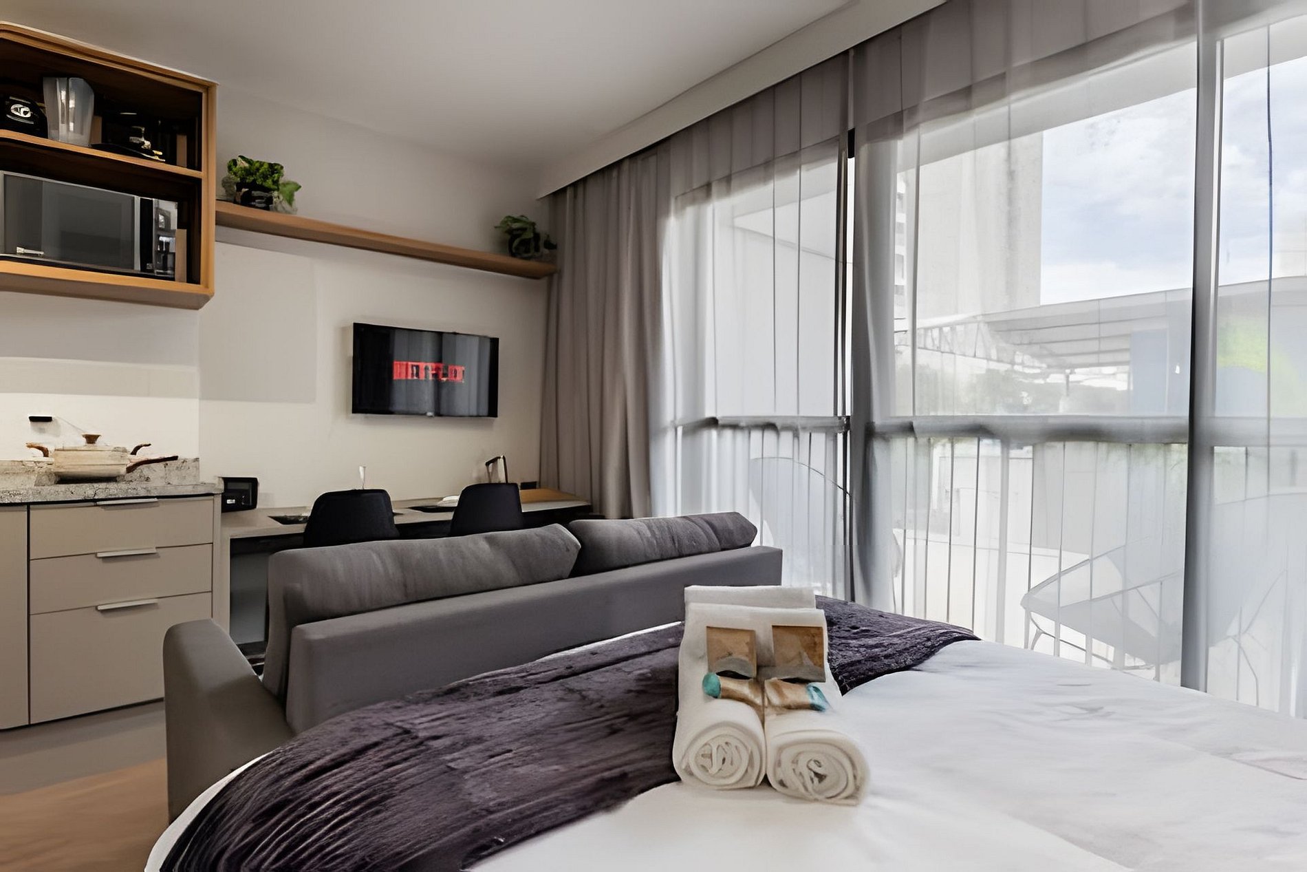 Acesso à piscina, academia, CoWorking. Roupa de cama e amenities inclusos. Próximo ao Allianz Parque e Shoppings Bourbon e West Plaza, e outros centros como Espaço Unimed, Espaço das Américas, Villa Country, Audio, Parque da Agua Branca.