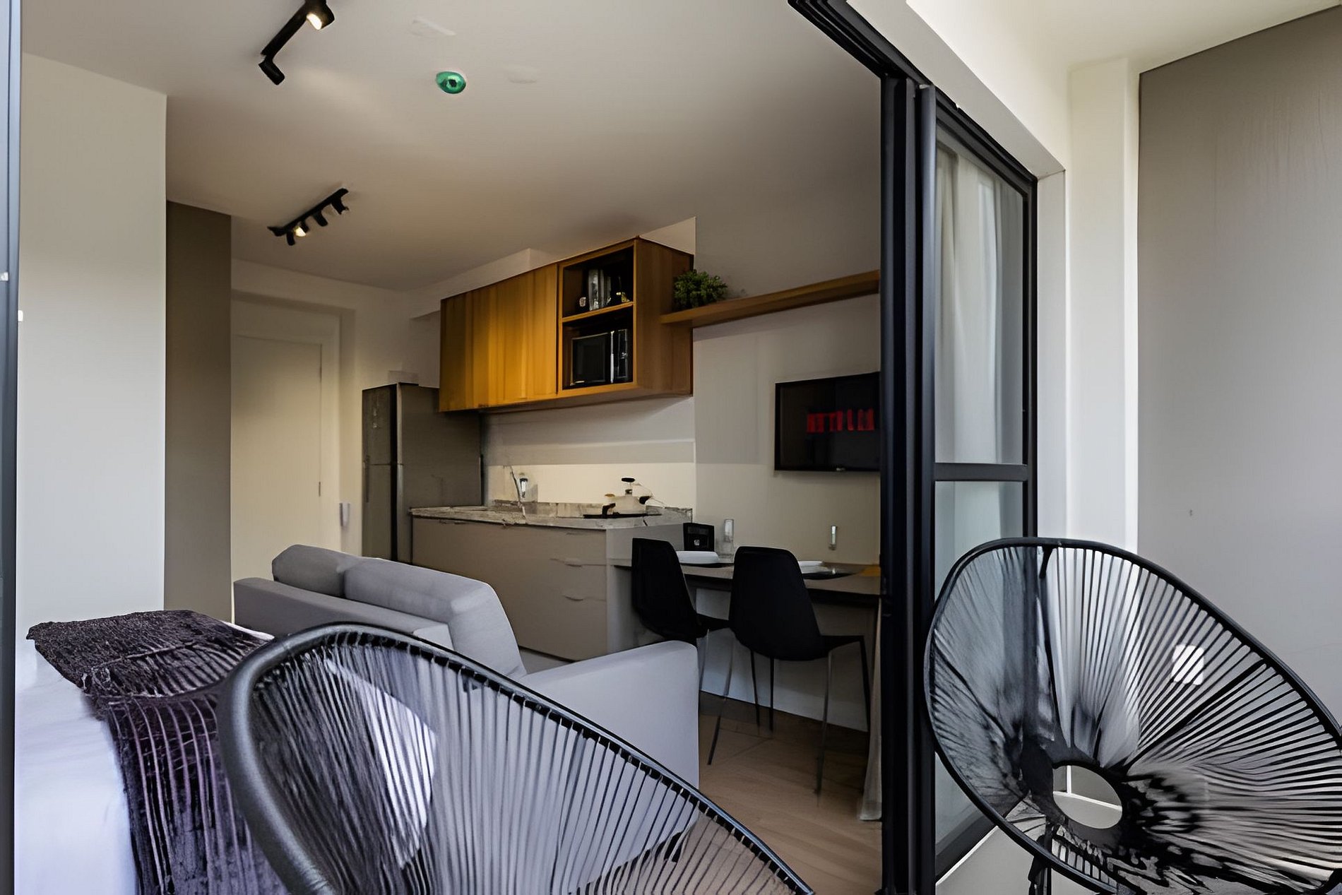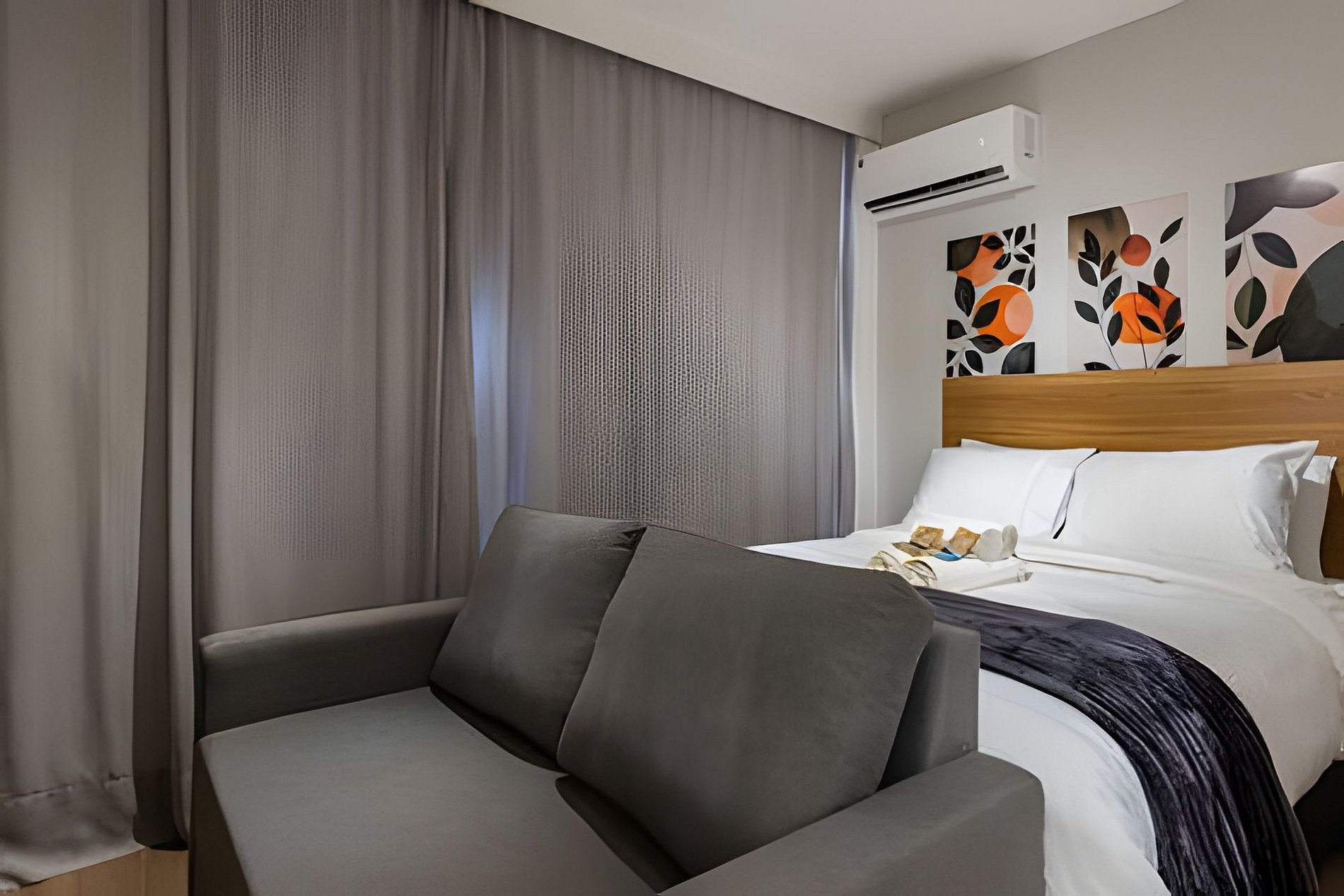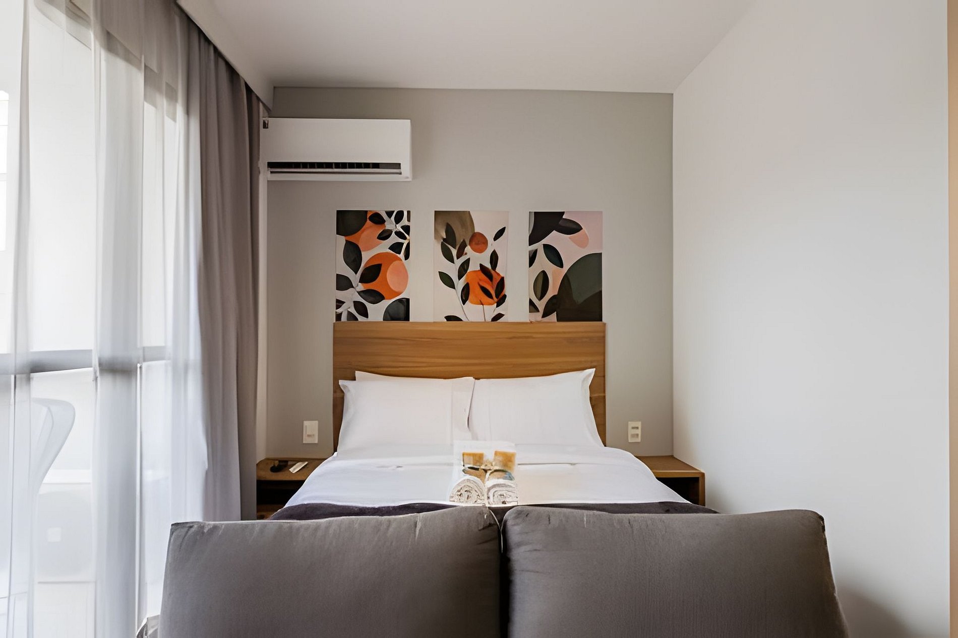 Apto moderno no 3º andar do Bourbon Smart, com cama Casal e uma incrível varanda.