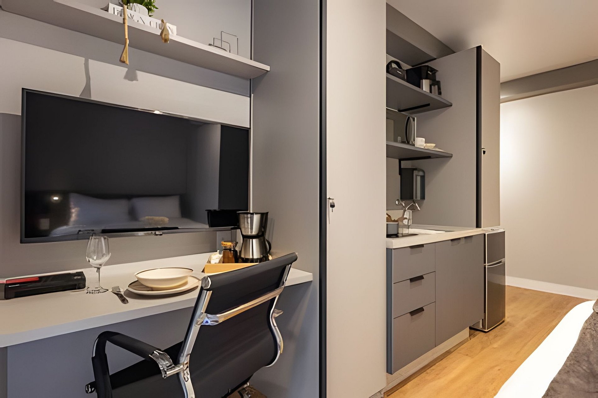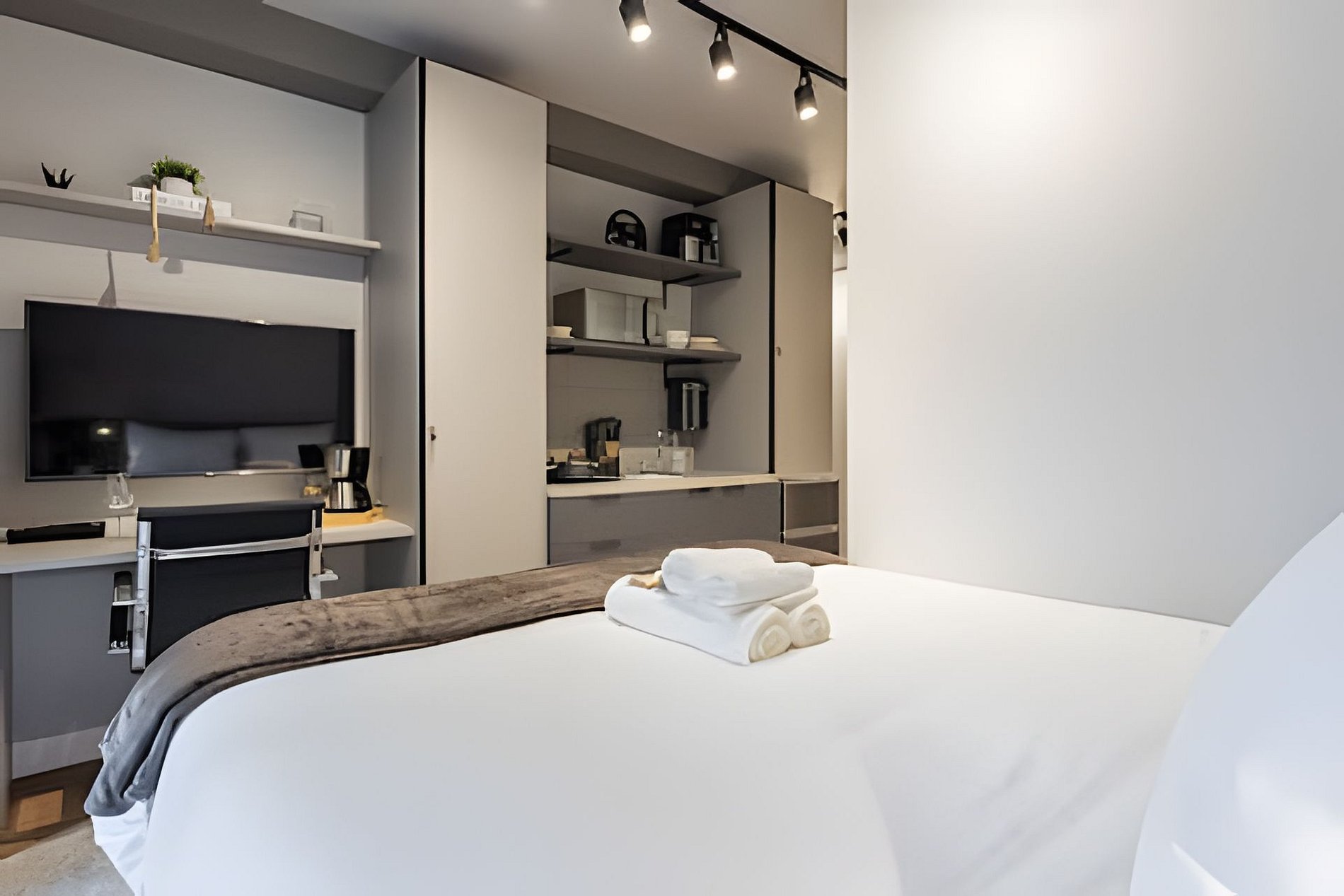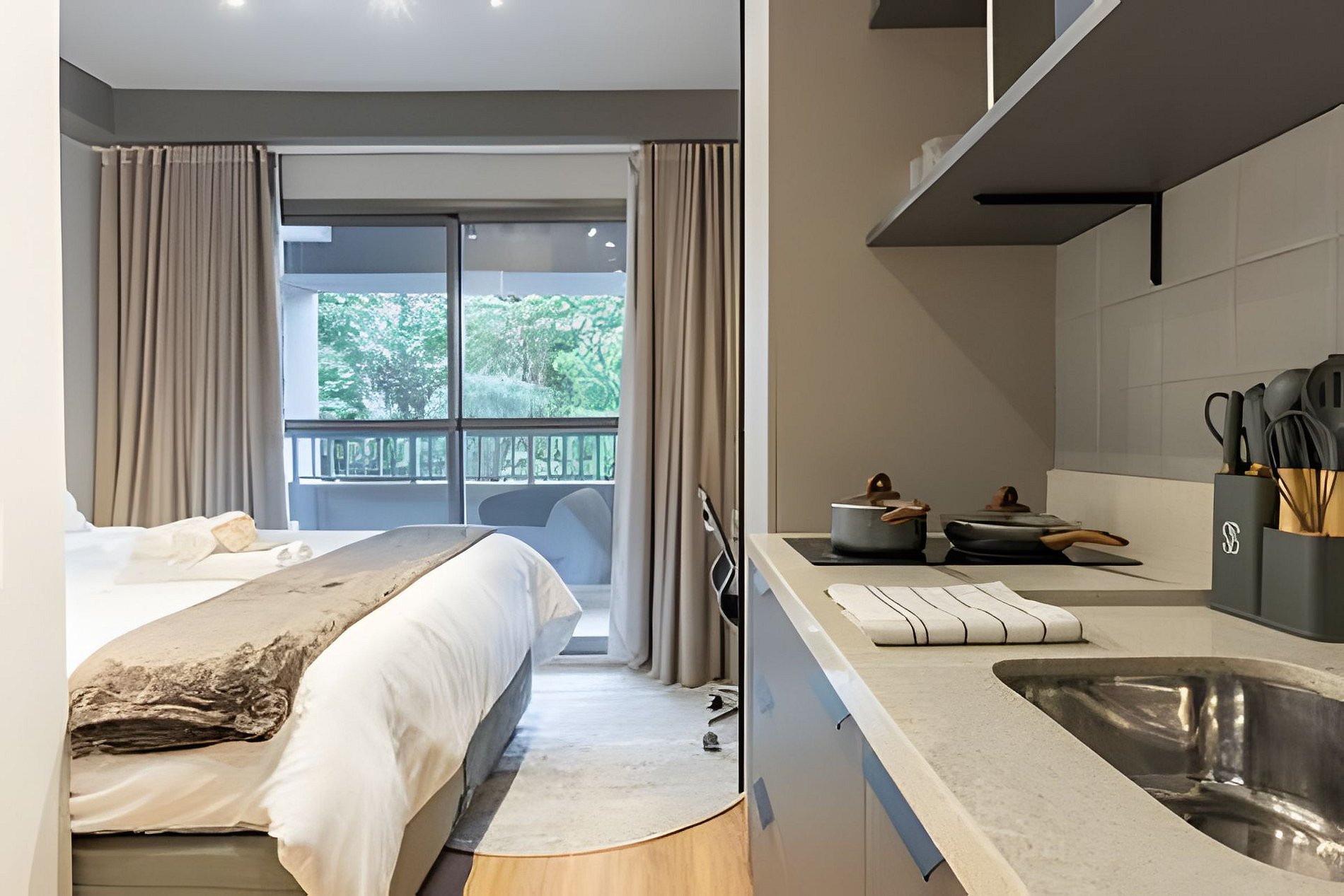 Studio completo na Vila Mascote, em uma das regiões mais valorizadas da zona sul. Ideal para quem vem a trabalho, precisa estar próximo ao Aeroporto de Congonhas ou busca uma estadia confortável com tudo por perto. Funcional e totalmente equipado para curtas e médias temporadas. Conta com cama confortável, ar-condicionado, Wi-Fi rápido, Smart TV e bancada para trabalho. A cozinha é completa, com utensílios, cooktop, micro-ondas e geladeira, perfeita p/ preparar refeições no dia a dia.