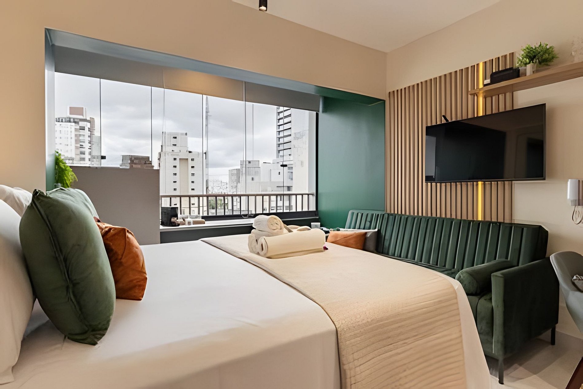 Bem-vindo ao apto 1110 do Nik Paulista! No coração da Rua Augusta. Viva e se expresse no coração de Cultura e Arte da cidade de São Paulo. Quarto confortável com cama Queen e sofá cama com ar-condicionado. Perfeito para quem busca conforto e localização privilegiada na Augusta, a 250m da Avenida Paulista. Rua Augusta, 1001 - Consolação, São Paulo/SP