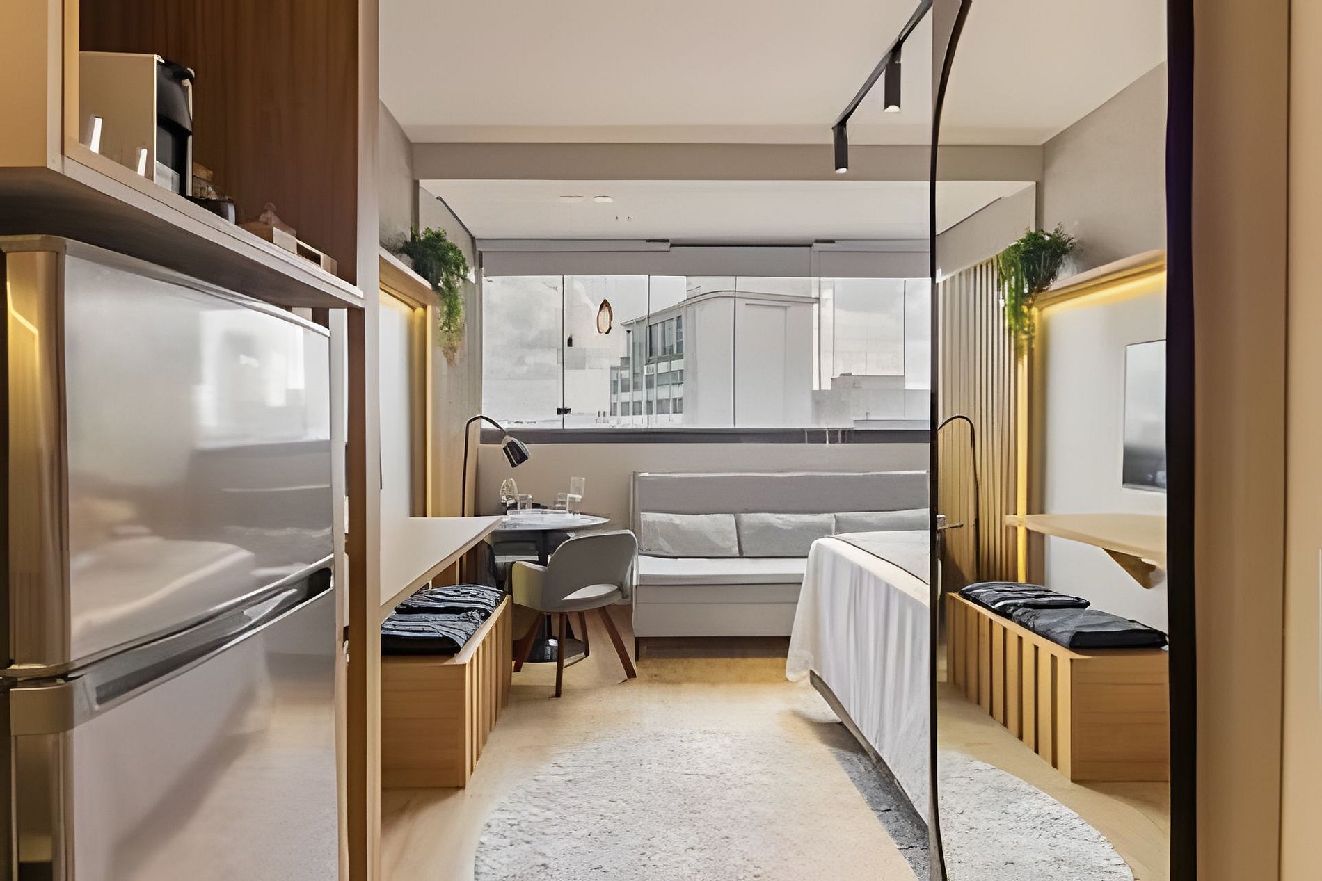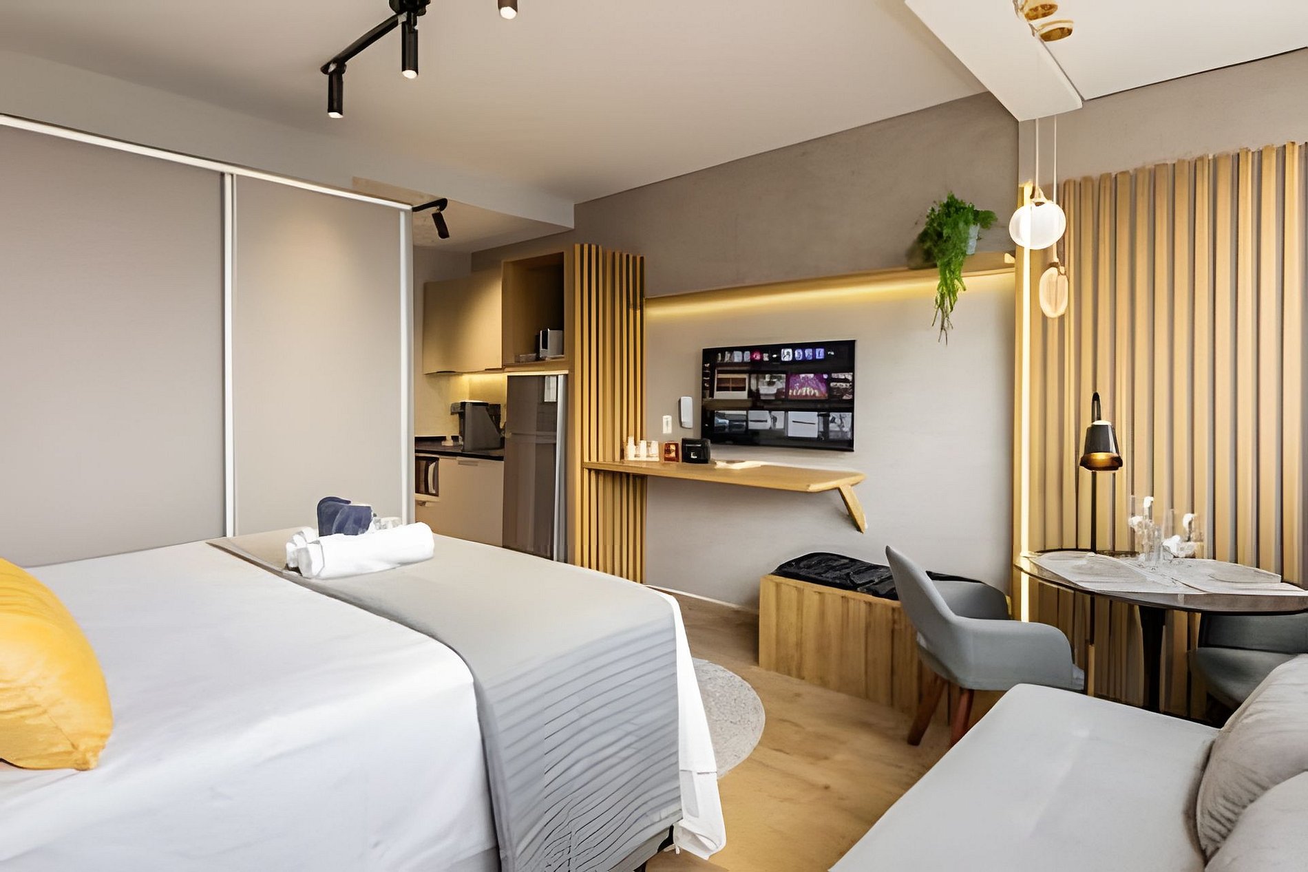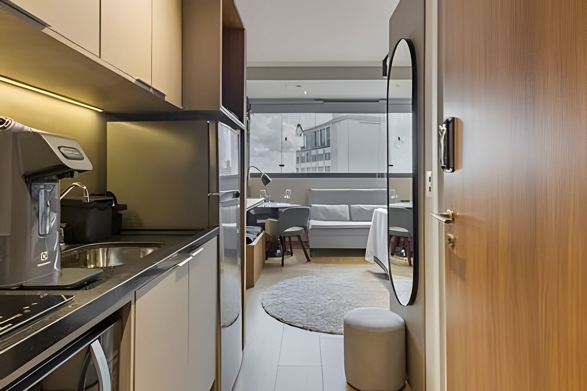 Oferecemos tudo para sua estadia ser confortável e prática: ar-condicionado, Wi-Fi, cozinha completa com cafeteira, fogão, utensílios e muito mais. Roupa de cama está incluída para maior comodidade. O prédio dispõe de portaria 24 horas, academia e espaço de coworking. Acomoda até três pessoas e é ideal para quem deseja explorar São Paulo.