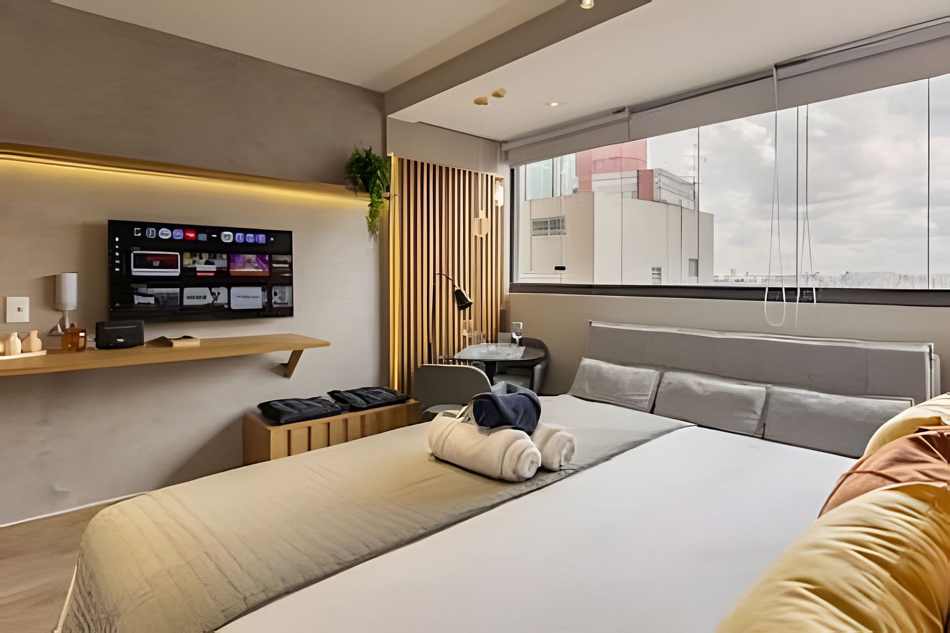 Aqui você encontra tudo para uma estadia confortável e prática: ar-condicionado, internet sem fio, cozinha equipada com cafeteira, fogão, utensílios e outros itens essenciais. Também oferecemos roupa de cama para sua comodidade. O edifício possui portaria 24 horas, academia e espaço de coworking. Com capacidade para até 3 pessoas, é ideal para quem quer explorar São Paulo.