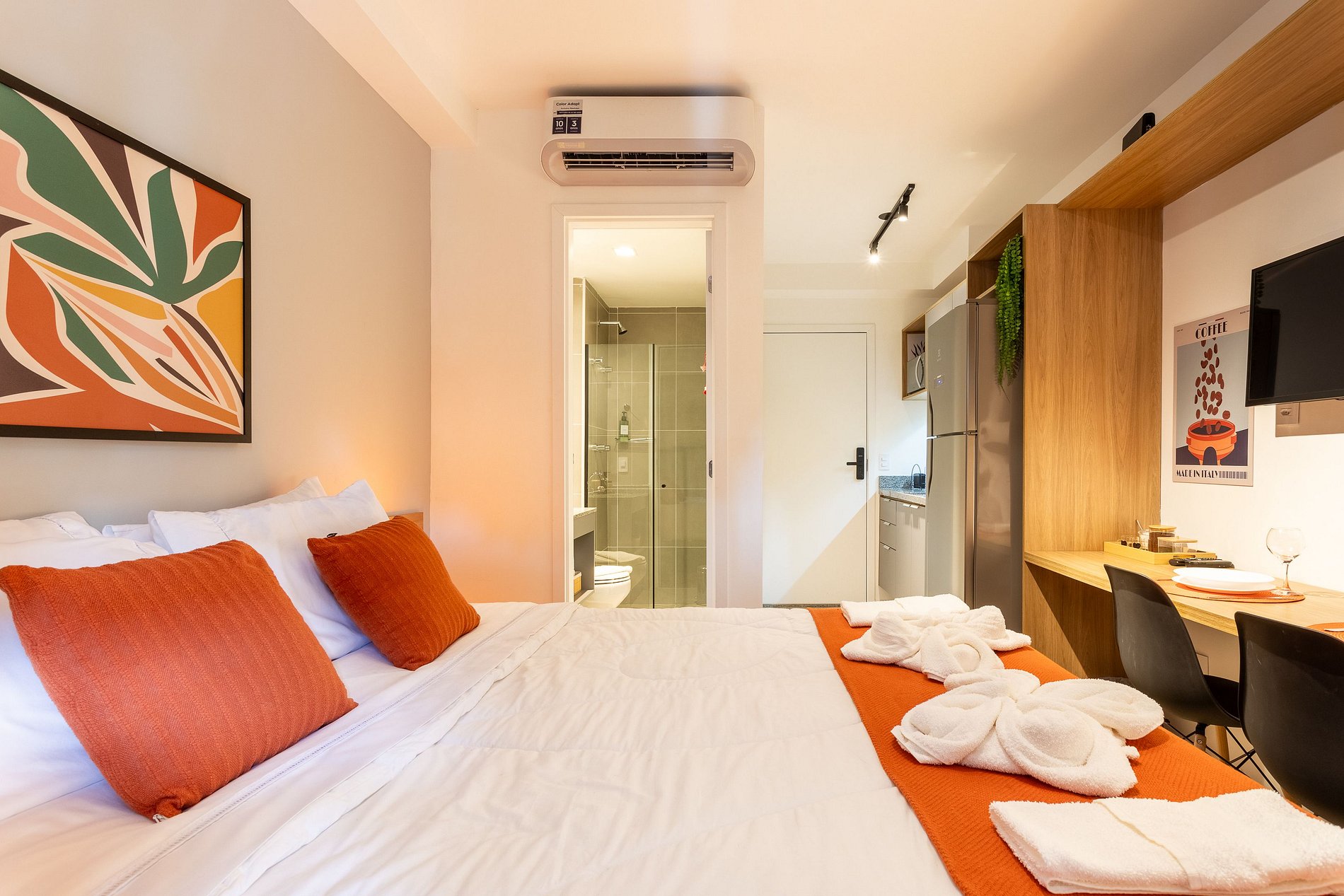 Nosso studio oferece a combinação perfeita de localização e conforto, a apenas 500m do Allianz Parque. Situado em um bairro vibrante, você estará perto de tudo que precisa, desde comércio até opções de lazer. O espaço é acolhedor, com ar-condicionado, Wi-Fi de alta velocidade e cozinha equipada. Aproveite as áreas comuns, incluindo piscina e academia. Traga suas malas e desfrute de uma estadia sem preocupações!