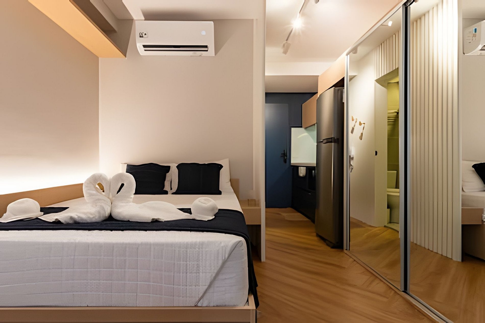 Nosso studio oferece a combinação perfeita de localização e conforto, a apenas 500m do Allianz Parque. Situado em um bairro vibrante, você estará perto de tudo que precisa, desde comércio até opções de lazer. O espaço é acolhedor, com ar-condicionado, Wi-Fi de alta velocidade e cozinha equipada. Aproveite as áreas comuns, incluindo piscina e academia. Traga suas malas e desfrute de uma estadia sem preocupações!