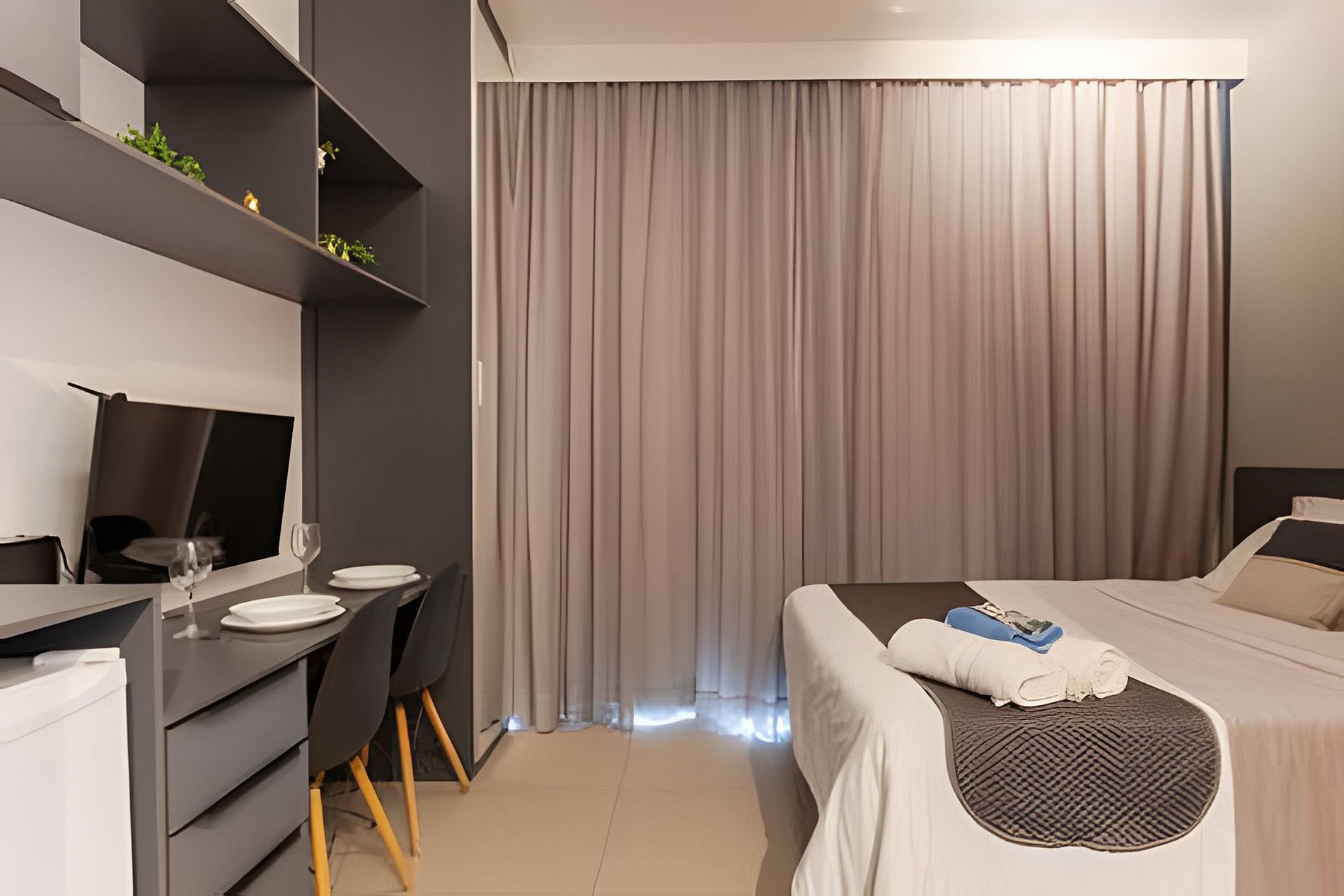 Apartamento estrategicamente projetado para máximo conforto e funcionalidade. Ambiente moderno, mobiliado e decorado com requinte. Infraestrutura de ponta que transforma sua estadia em uma experiência única: ● Segurança: Fechadura eletrônica e portaria 24h ● Conectividade total: Wi-Fi de alta performance ● Entretenimento: Smart TV ● Conforto visual: Persianas Blackout ● Bem-estar: Kit banho premium ● Descanso garantido: Roupa de cama top ● Cozinha fully equipped: Cafeteira, cooktop, geladeira, utensílios completos