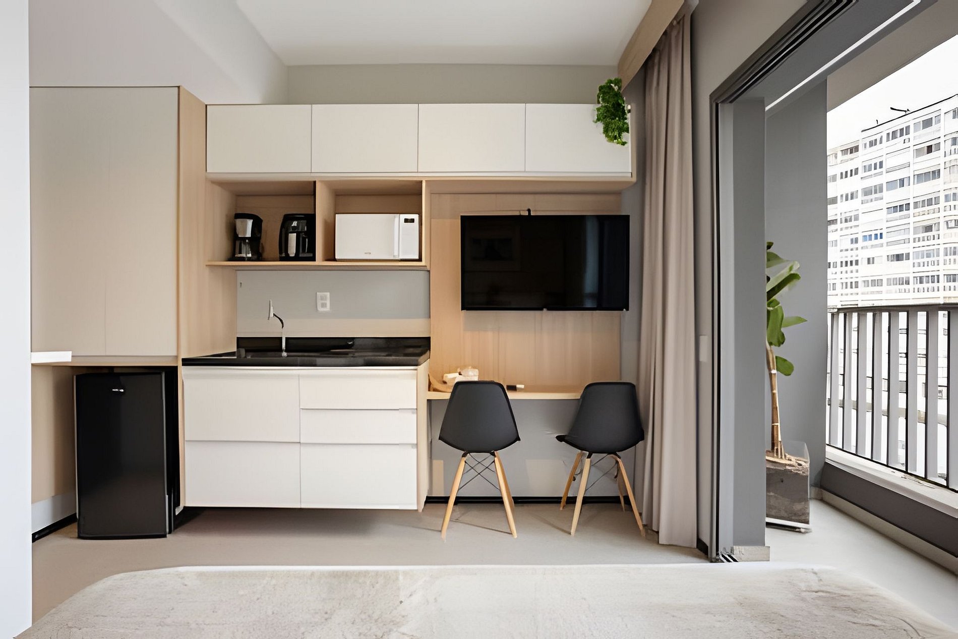 Studio bem localizado a menos de 400 Metros das Linhas Vermelha e Amarela do Metrô de São Paulo. A acomodação dispõe de internet e oferece todos os utensílios de cozinha, além de roupas de cama e banho. O condomínio oferece várias comodidades compartilhadas, incluindo um terraço na cobertura com áreas de estar, cinema, espaços de coworking, um café e uma cozinha para reuniões maiores.