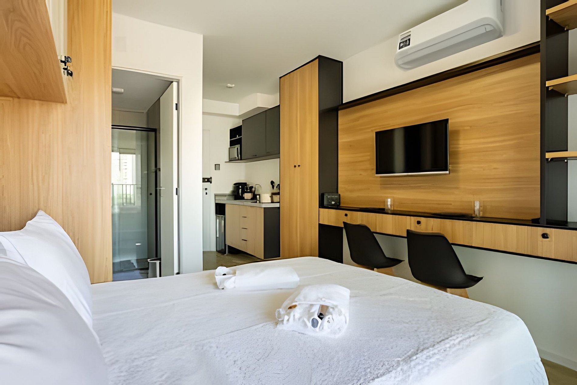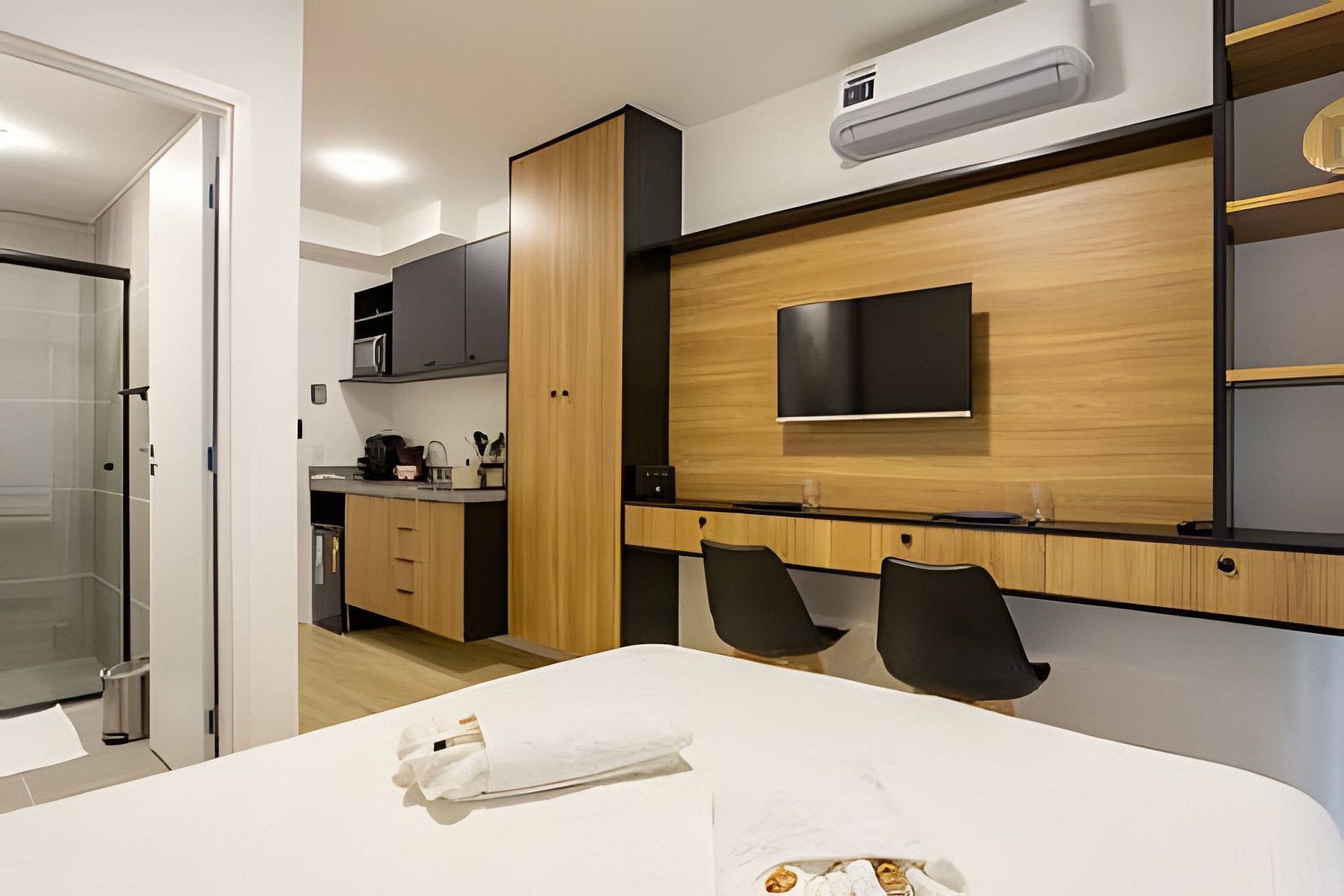 Nosso studio oferece a combinação perfeita de localização e conforto, a apenas 500m do Allianz Parque. Situado em um bairro vibrante, você estará perto de tudo que precisa, desde comércio até opções de lazer. O espaço é acolhedor, com ar-condicionado, Wi-Fi de alta velocidade e cozinha equipada. Aproveite as áreas comuns, incluindo piscina e academia. Traga suas malas e desfrute de uma estadia sem preocupações!