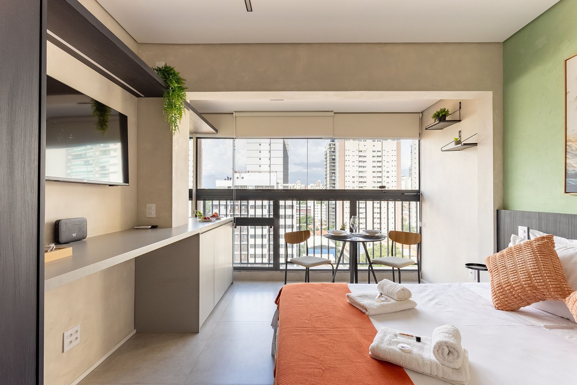 Studio novo bem iluminado e decorado, em andar alto, a apenas 500m do Allianz Parque. Desfrute de uma vista deslumbrante da cidade enquanto relaxa em um espaço aconchegante, equipado, Cama Confortável, com ar-condicionado, Wi-Fi rápido e cozinha completa. Explore o bairro vibrante com facilidade e aproveite as comodidades do prédio, como Piscina e CoWorking nas alturas, Academia bem equipada, Lavanderia APP OMO e PetPlace Venha para uma estadia inesquecível!