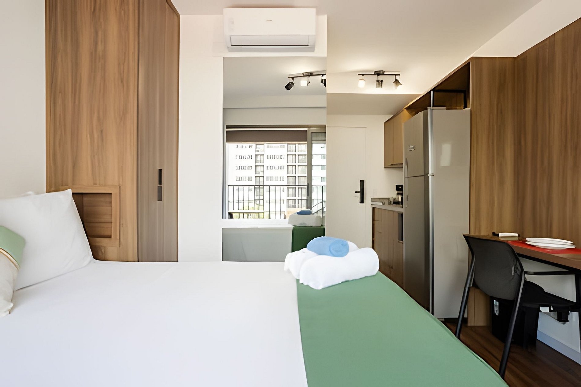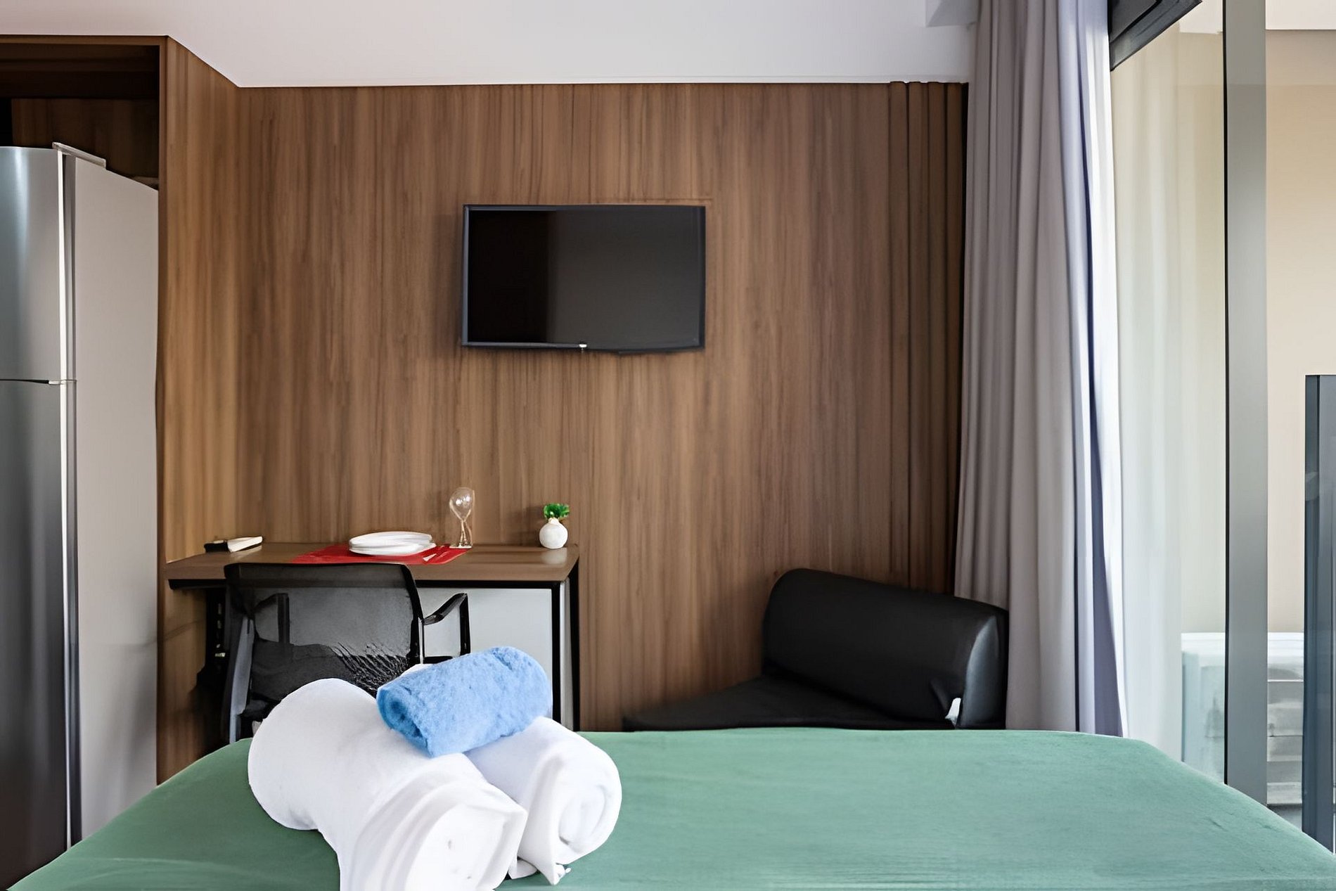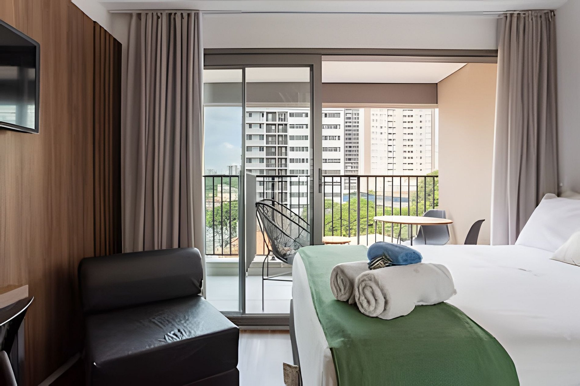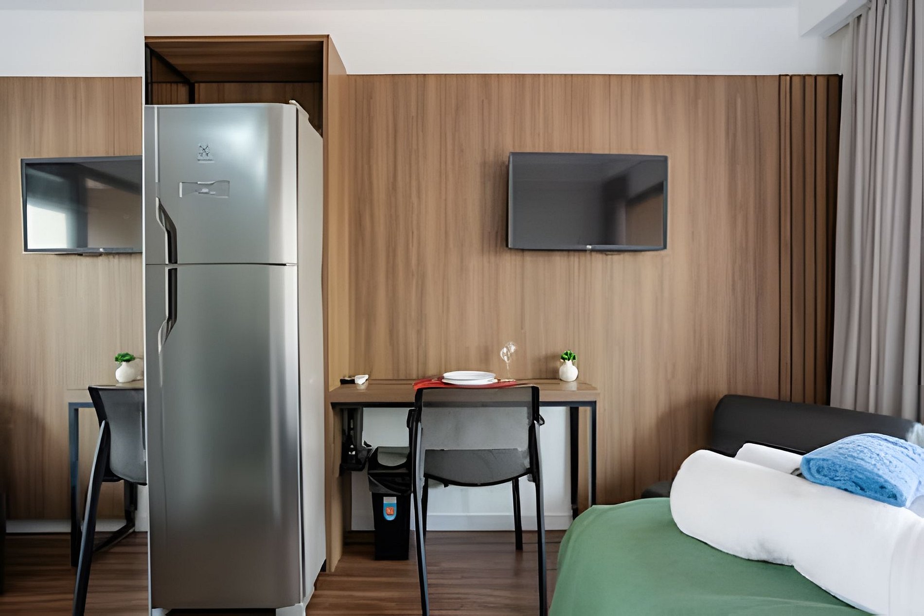 Nosso studio oferece a combinação perfeita de localização e conforto para até 3 Hospedes A apenas 500m do Allianz Parque. Situado em um bairro vibrante, você estará perto de tudo que precisa, desde comércio até opções de lazer. O espaço é acolhedor, com ar-condicionado, Wi-Fi de alta velocidade e cozinha equipada. Aproveite as áreas comuns, incluindo piscina e academia. Traga suas malas e desfrute de uma estadia sem preocupações!