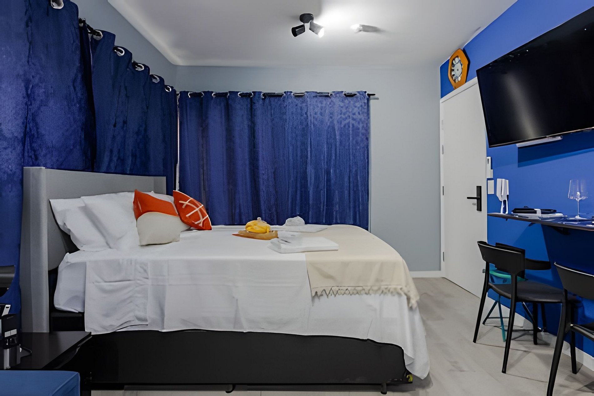 Nosso studio oferece a combinação perfeita de localização e conforto, a apenas 500m do Allianz Parque. Situado em um bairro vibrante, você estará perto de tudo que precisa, desde comércio até opções de lazer. O espaço é acolhedor, com ar-condicionado, Wi-Fi de alta velocidade e cozinha equipada. Aproveite as áreas comuns, incluindo piscina e academia. Traga suas malas e desfrute de uma estadia sem preocupações!