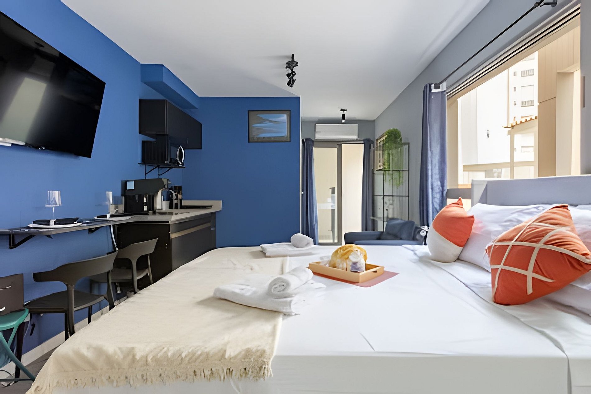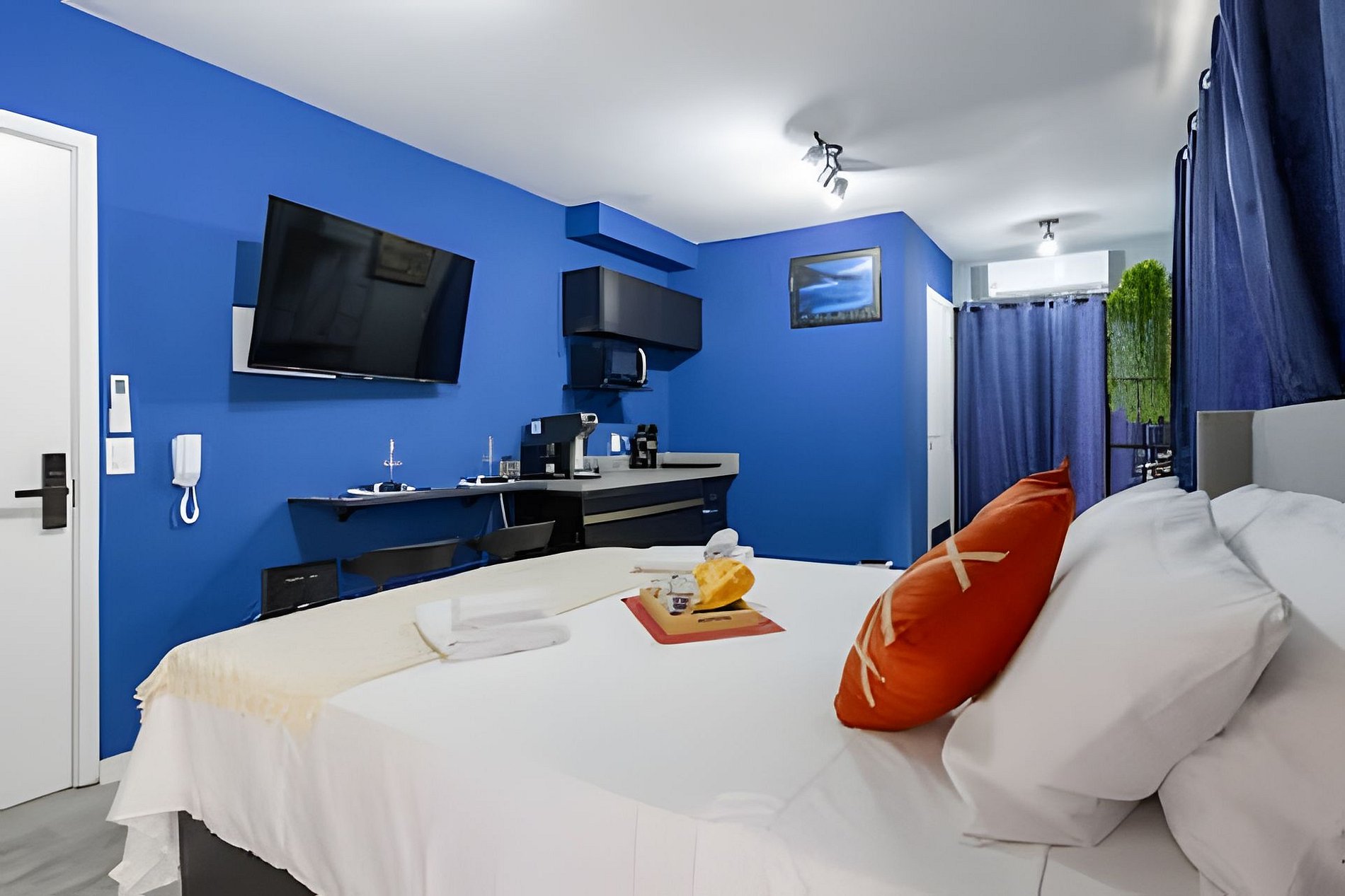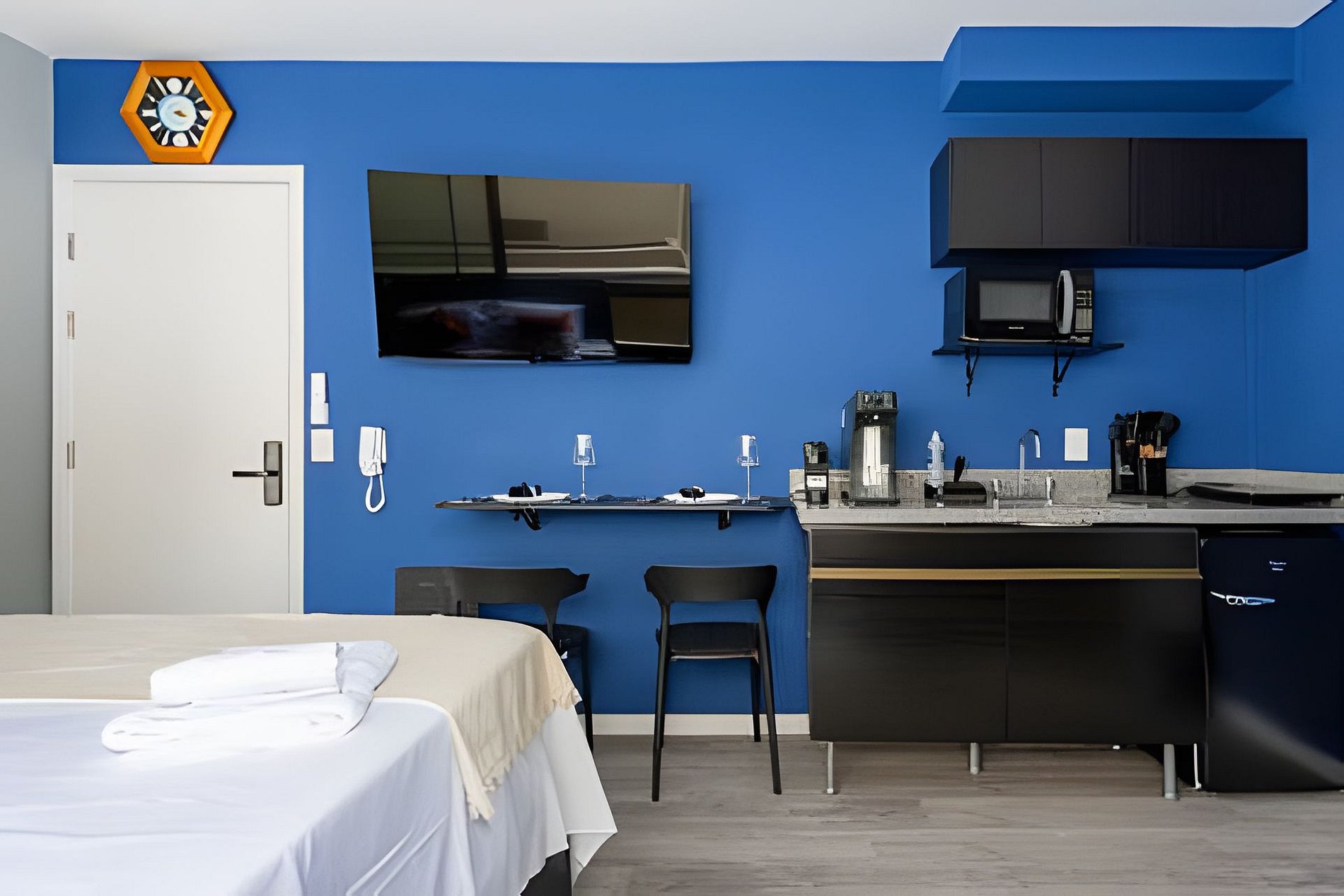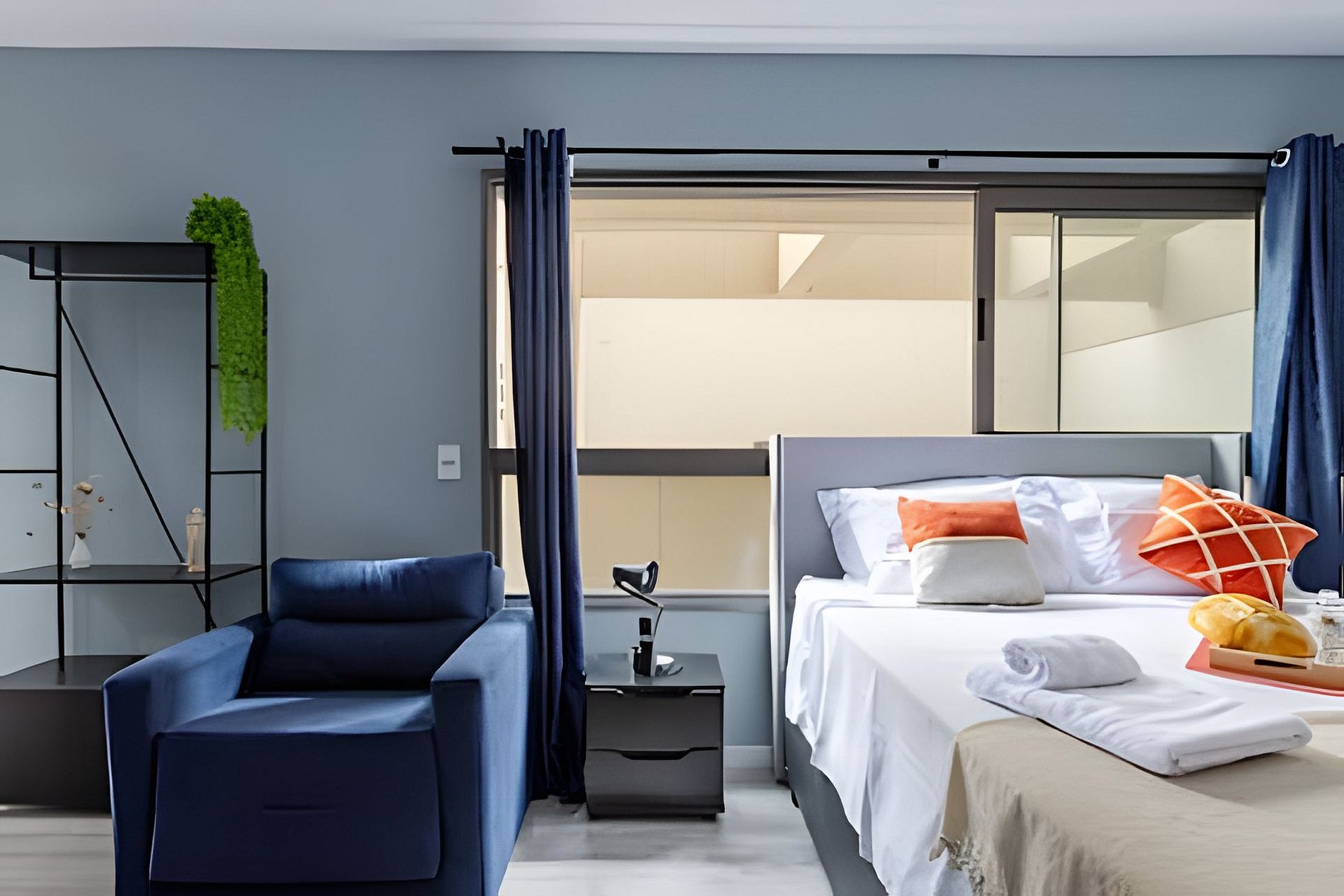 Nosso studio oferece a combinação perfeita de localização e conforto, a apenas 500m do Allianz Parque. Situado em um bairro vibrante, você estará perto de tudo que precisa, desde comércio até opções de lazer. O espaço é acolhedor, com ar-condicionado, Wi-Fi de alta velocidade e cozinha equipada. Aproveite as áreas comuns, incluindo piscina e academia. Traga suas malas e desfrute de uma estadia sem preocupações!