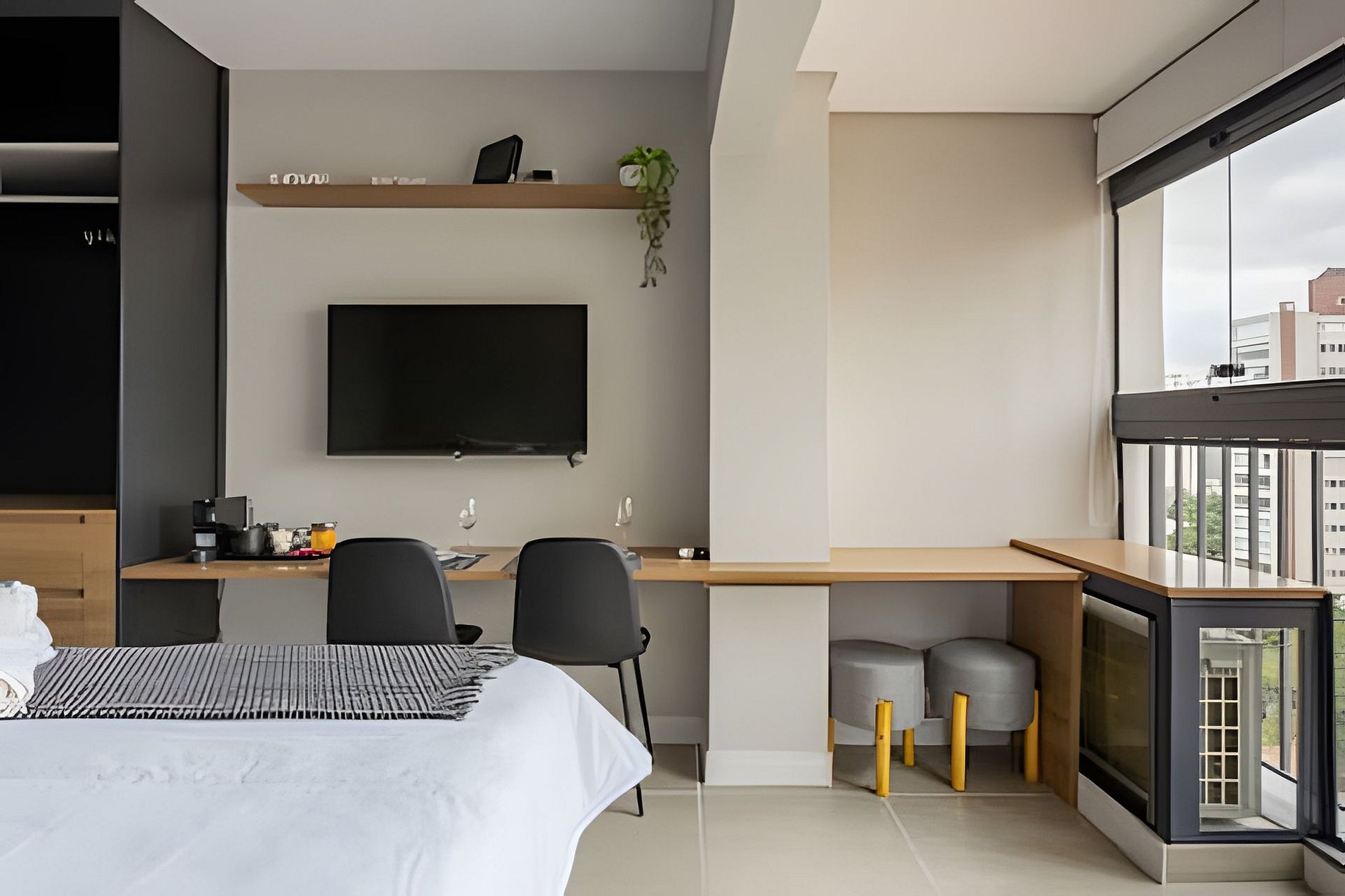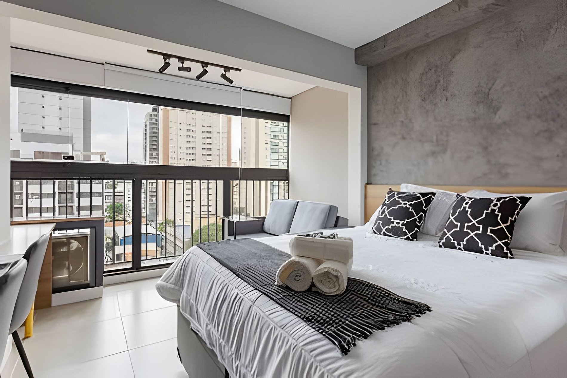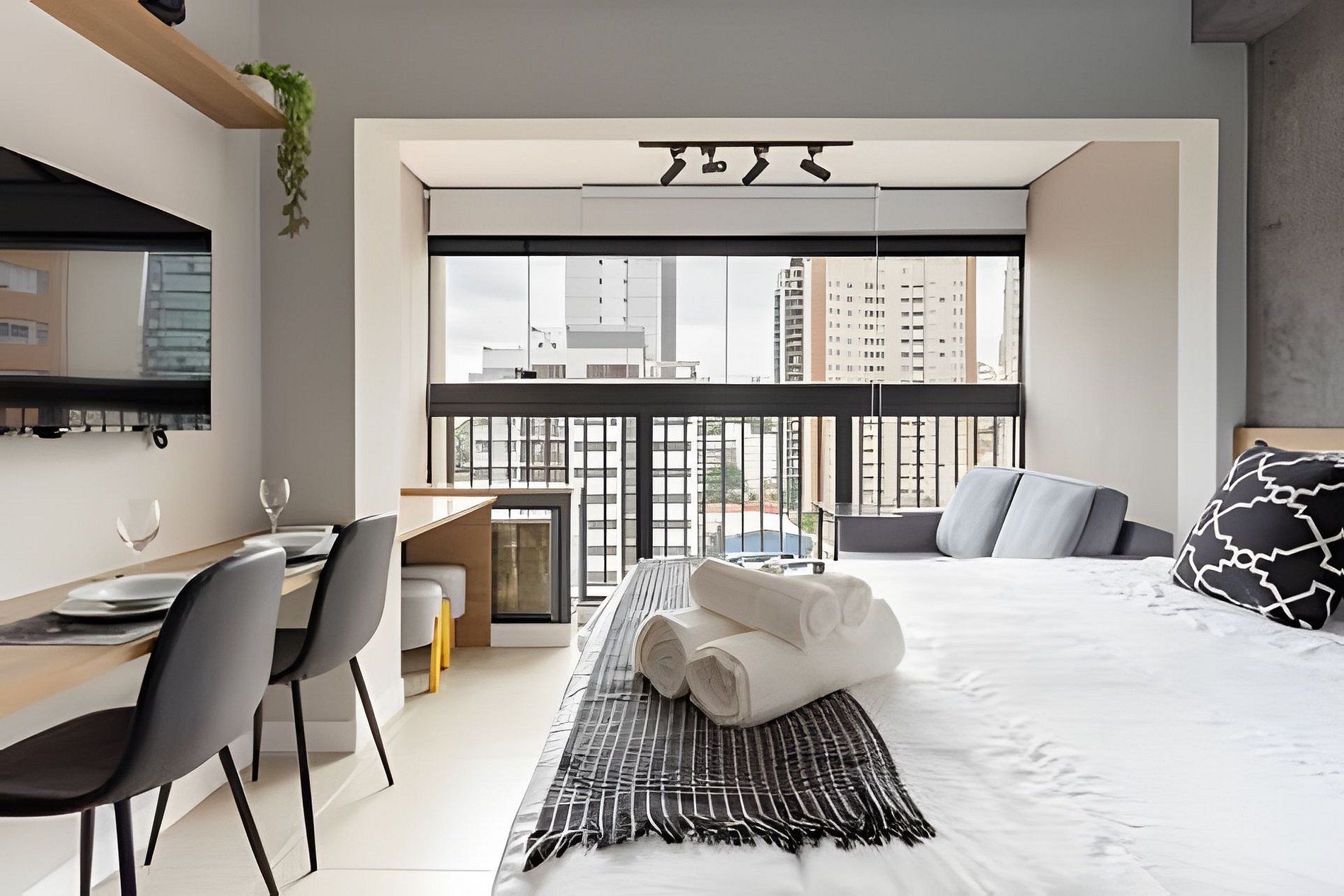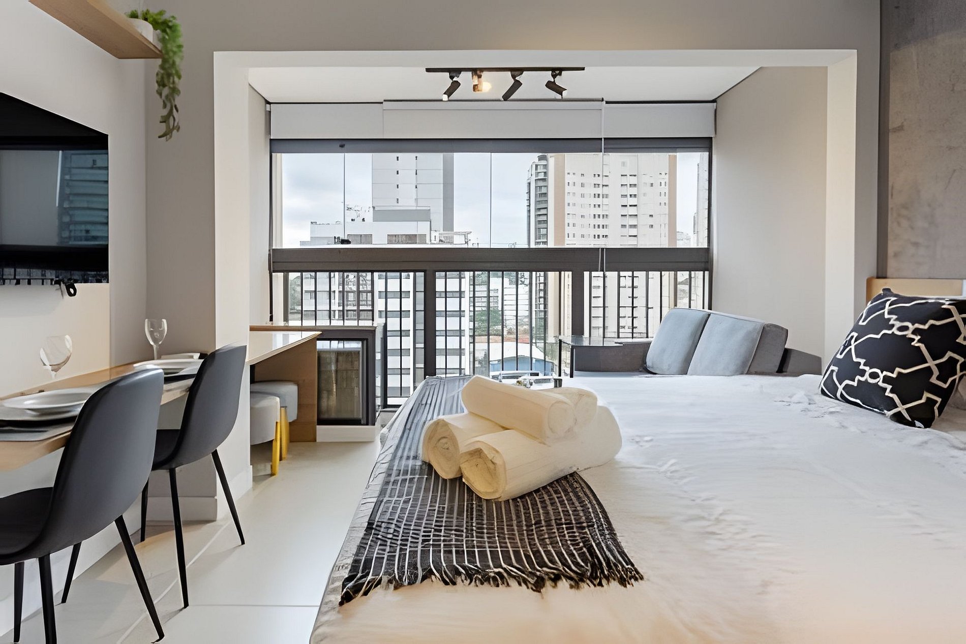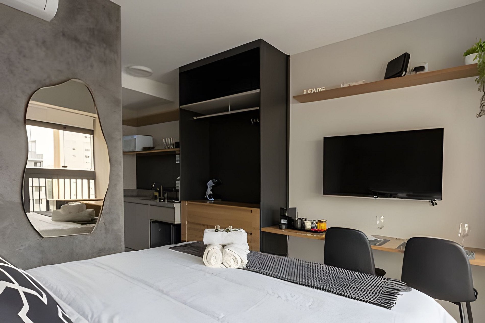 Acesso à piscina, academia, coworking, mini mercado e depósito de malas. Roupa de cama e amenities inclusos. Pets sob consulta. Próximo ao Allianz Parque!