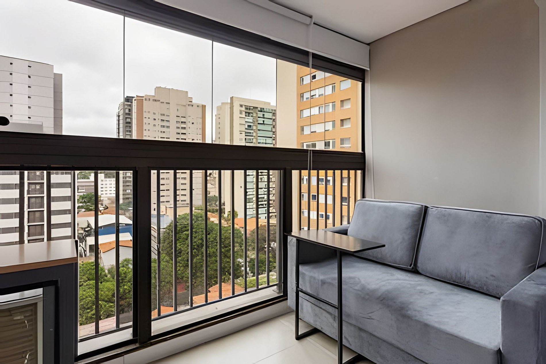 Apto moderno no 11º andar do Nik Perdizes, com cama Queen e sofá-cama, varanda estendida e bela vista do Parque da Água Branca. Conta com ar-condicionado, Smart TV, Wi-Fi, cozinha equipada, cafeteira Nespresso, kit café/chá, secador e steamer para roupas.