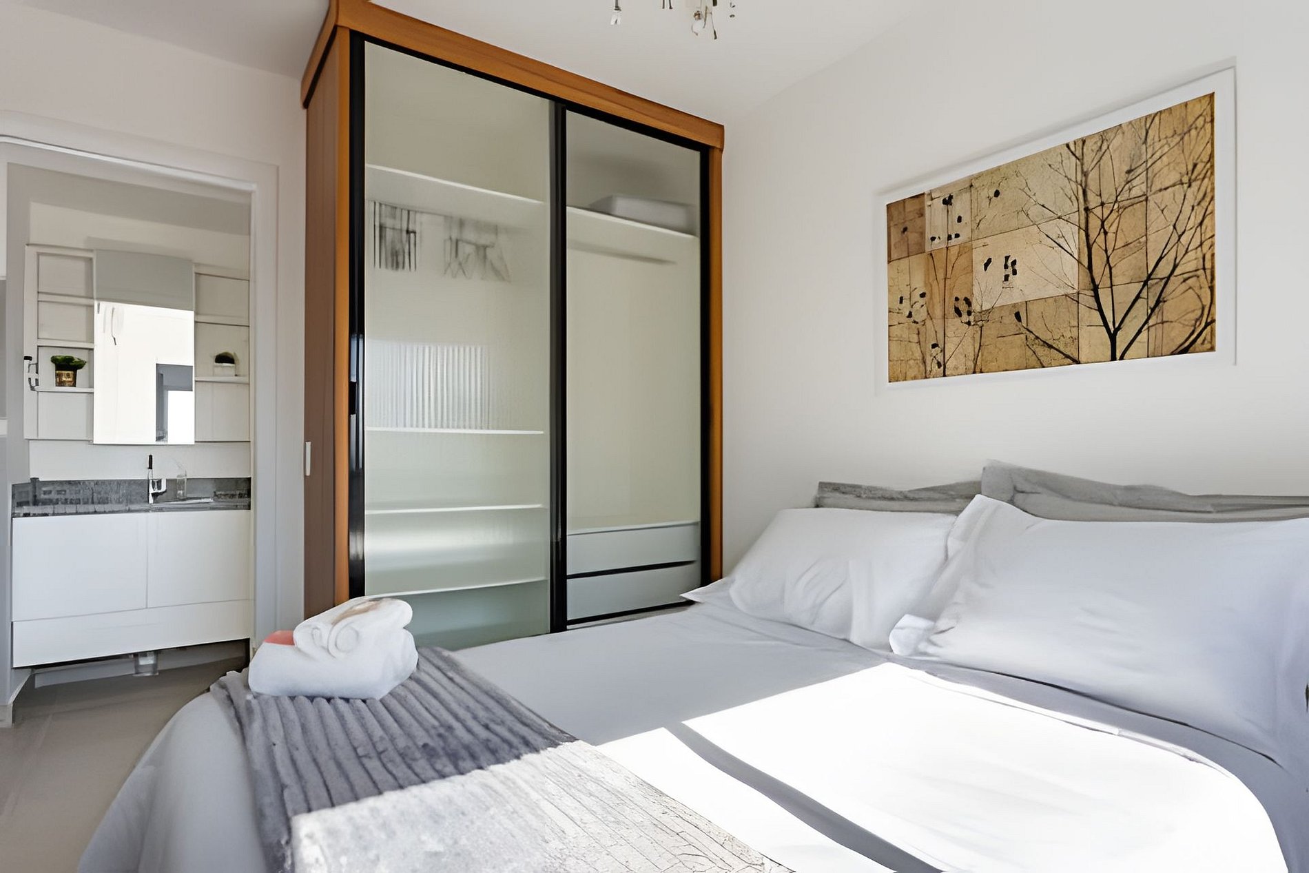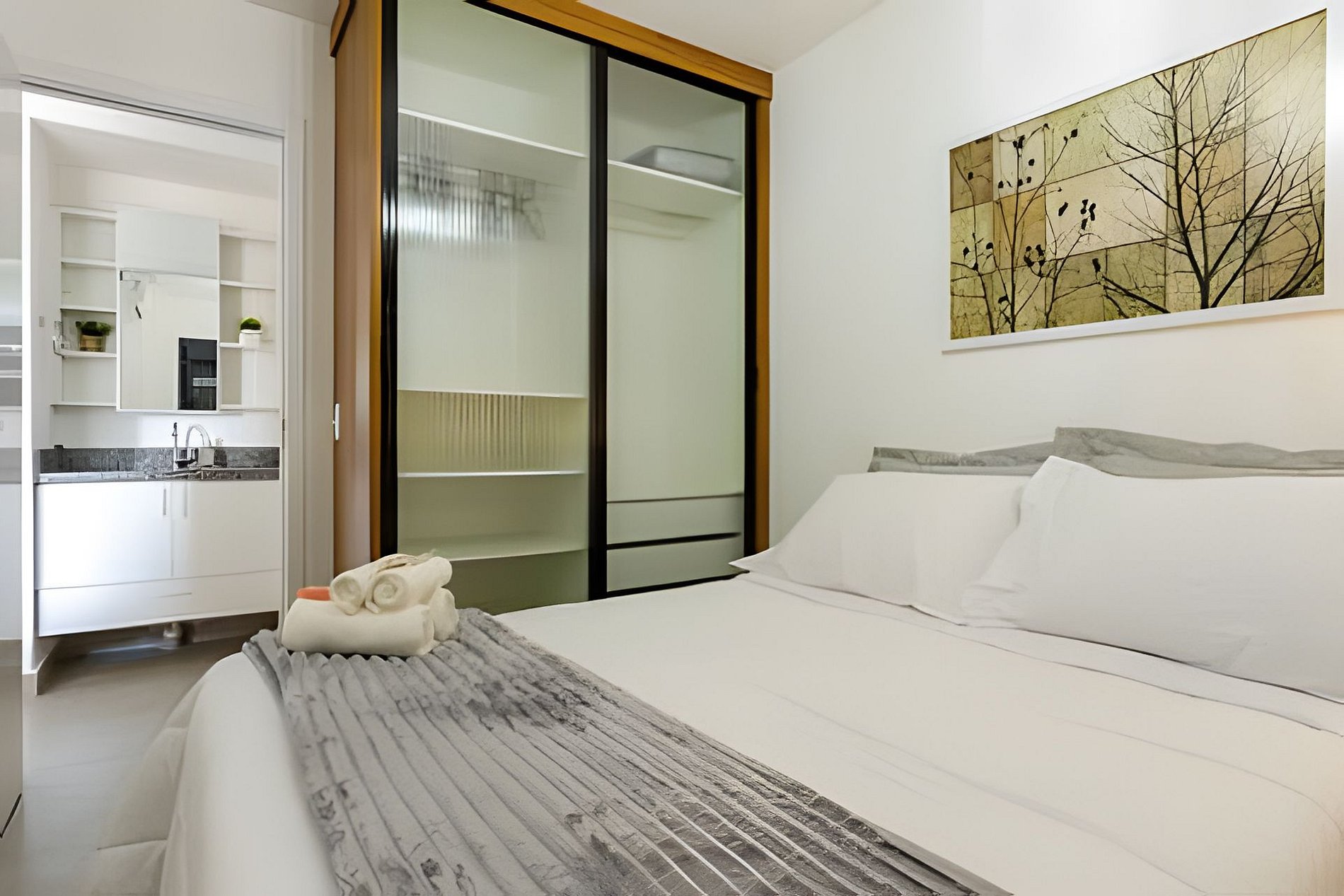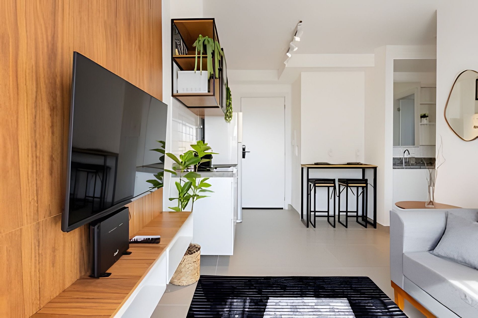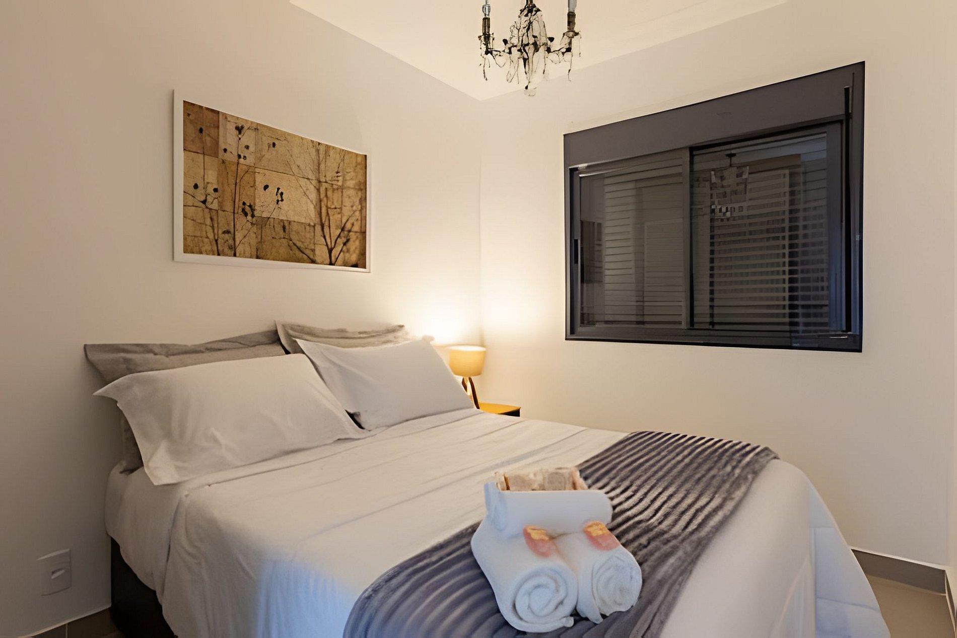 Decoração Clean com toques de madeira e iluminação planejada. Cozinha completa, banheiro Equipado, Espaço de trabalho dedicado. Wi-Fi de alta velocidade, ar-condicionado e Smart TV. Localização perfeita, próximo ao Allianz Parque, Shopping Bourbon, West Plaza e Memorial da América Latina. Acesso a coworking e lavanderia no prédio. Ideal para estadias a lazer ou trabalho!