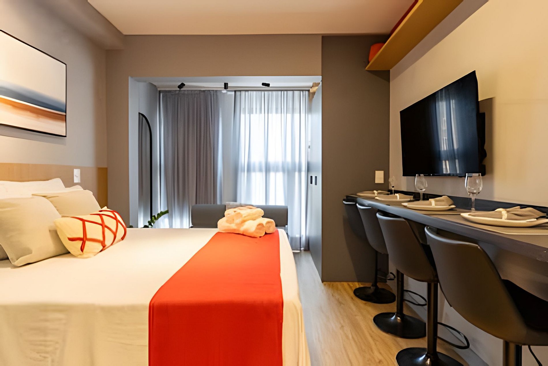 Acesso à piscina, academia, coworking, mini mercado e depósito de malas. Roupa de cama e amenities inclusos. Pets sob consulta. Próximo ao Allianz Parque!