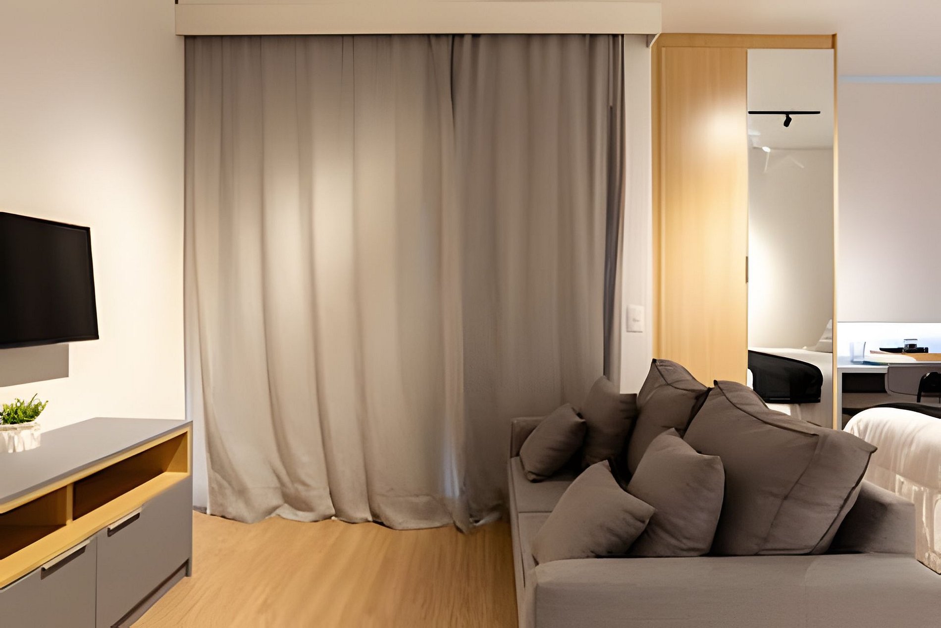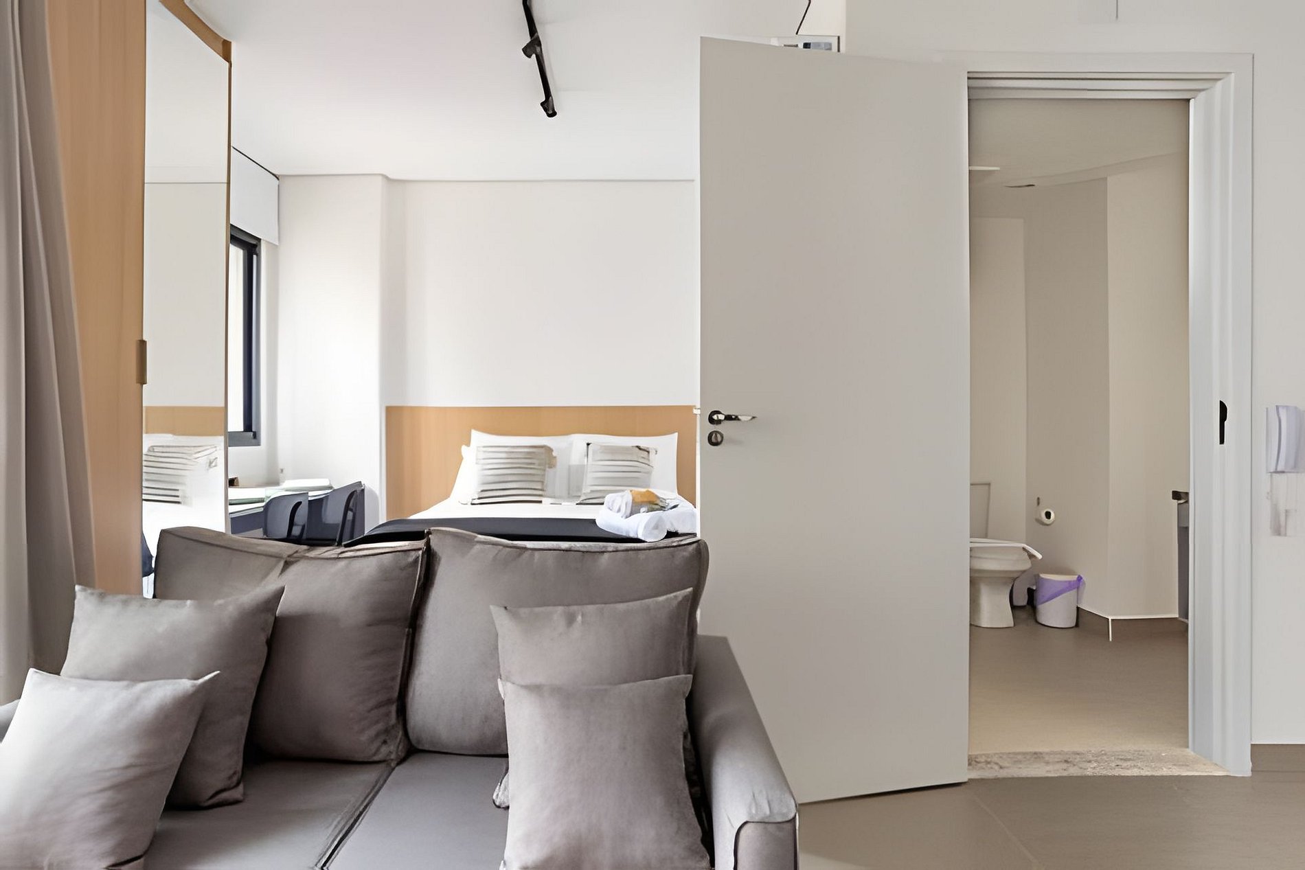 Acomoda até 4 adultos, com cama de casal e sofá-cama. Cozinha completa, kit café/chá, estação de trabalho, ar-condicionado e banheiro moderno. Roupas de cama e banho premium.