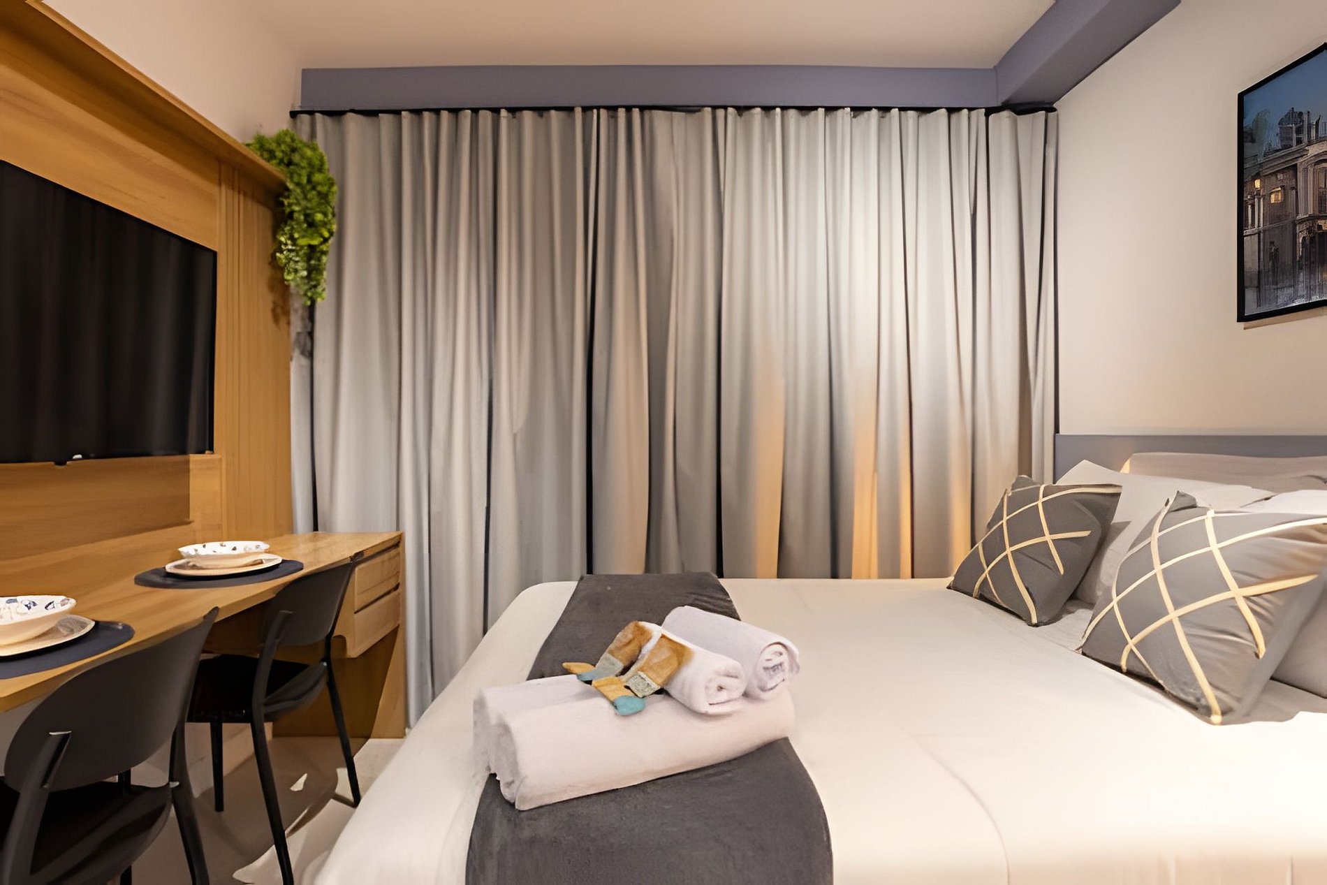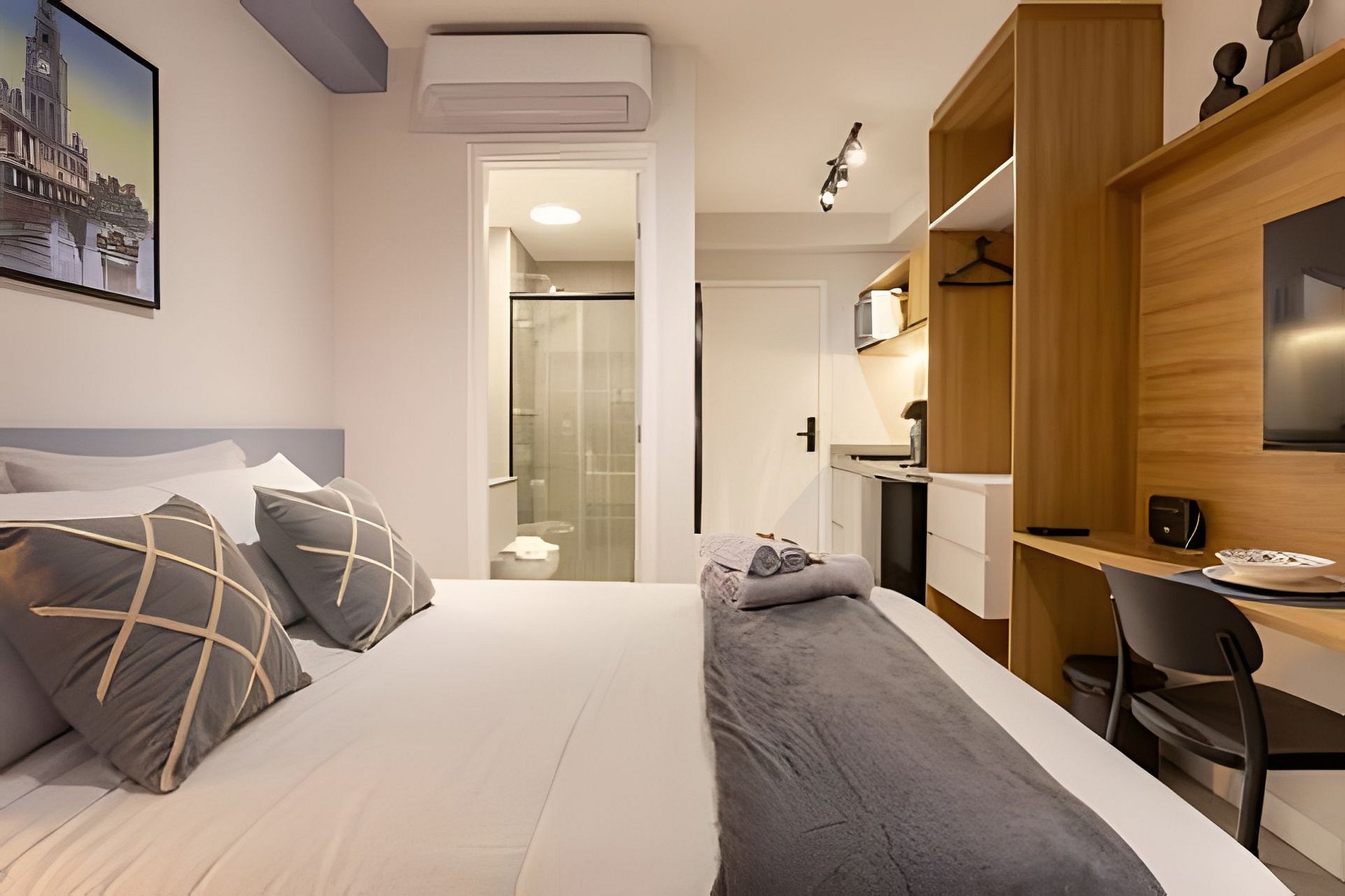 Nosso studio oferece a combinação perfeita de localização e conforto, a apenas 500m do Allianz Parque. Situado em um bairro vibrante, você estará perto de tudo que precisa, desde comércio até opções de lazer. O espaço é acolhedor, com ar-condicionado, Wi-Fi de alta velocidade e cozinha equipada. Aproveite as áreas comuns, incluindo piscina e academia. Traga suas malas e desfrute de uma estadia sem preocupações!