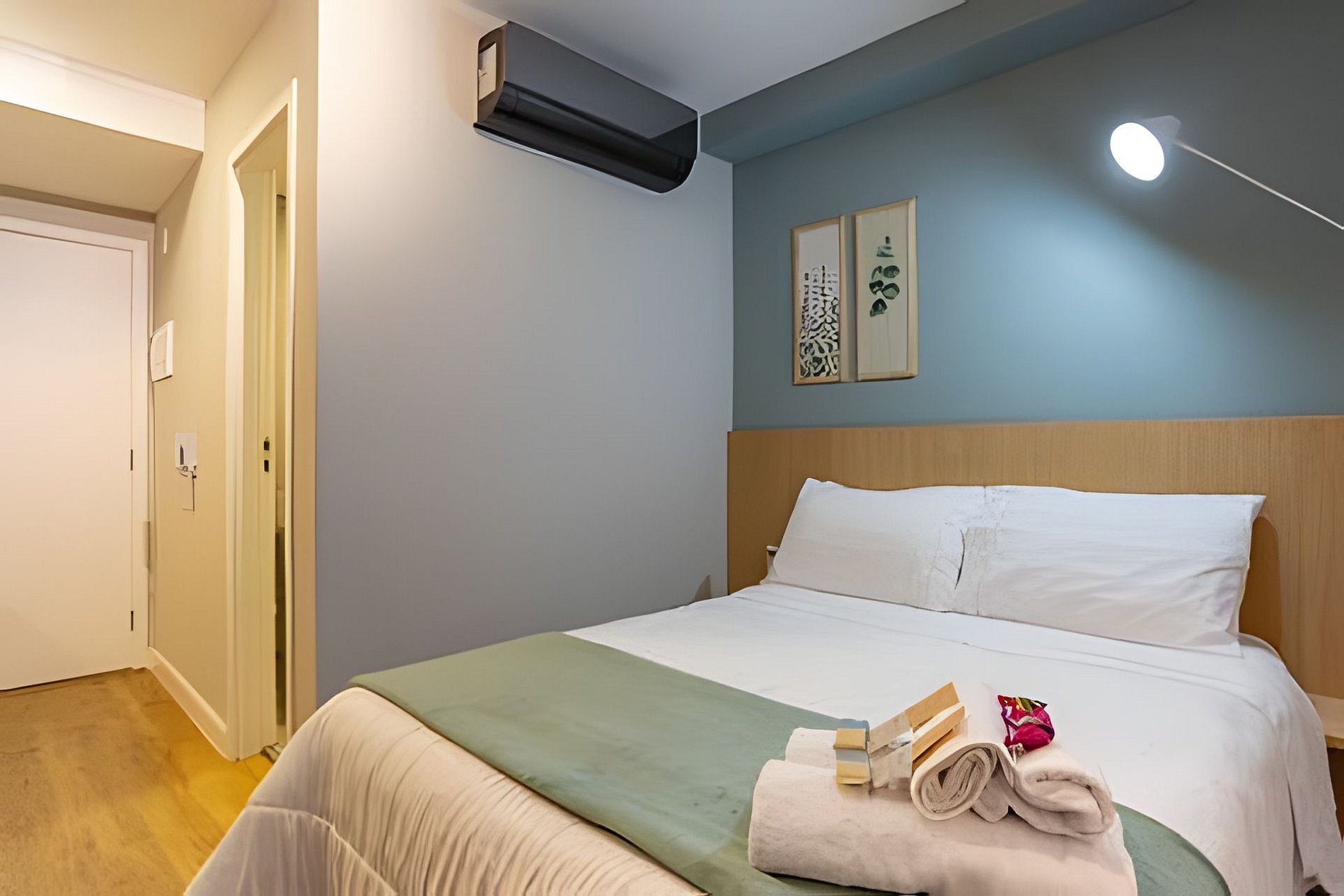 Studio novo bem iluminado e decorado, em andar Medio, a apenas 500m do Allianz Parque. Desfrute de uma vista deslumbrante da cidade enquanto relaxa em um espaço aconchegante, equipado, Cama Casal (Com Massageador), com ar-condicionado, Wi-Fi rápido e cozinha completa. Explore o bairro vibrante com facilidade e aproveite as comodidades do prédio, como Piscina e CoWorking nas alturas, Academia bem equipada, Lavanderia APP OMO e PetPlace Venha para uma estadia inesquecível!