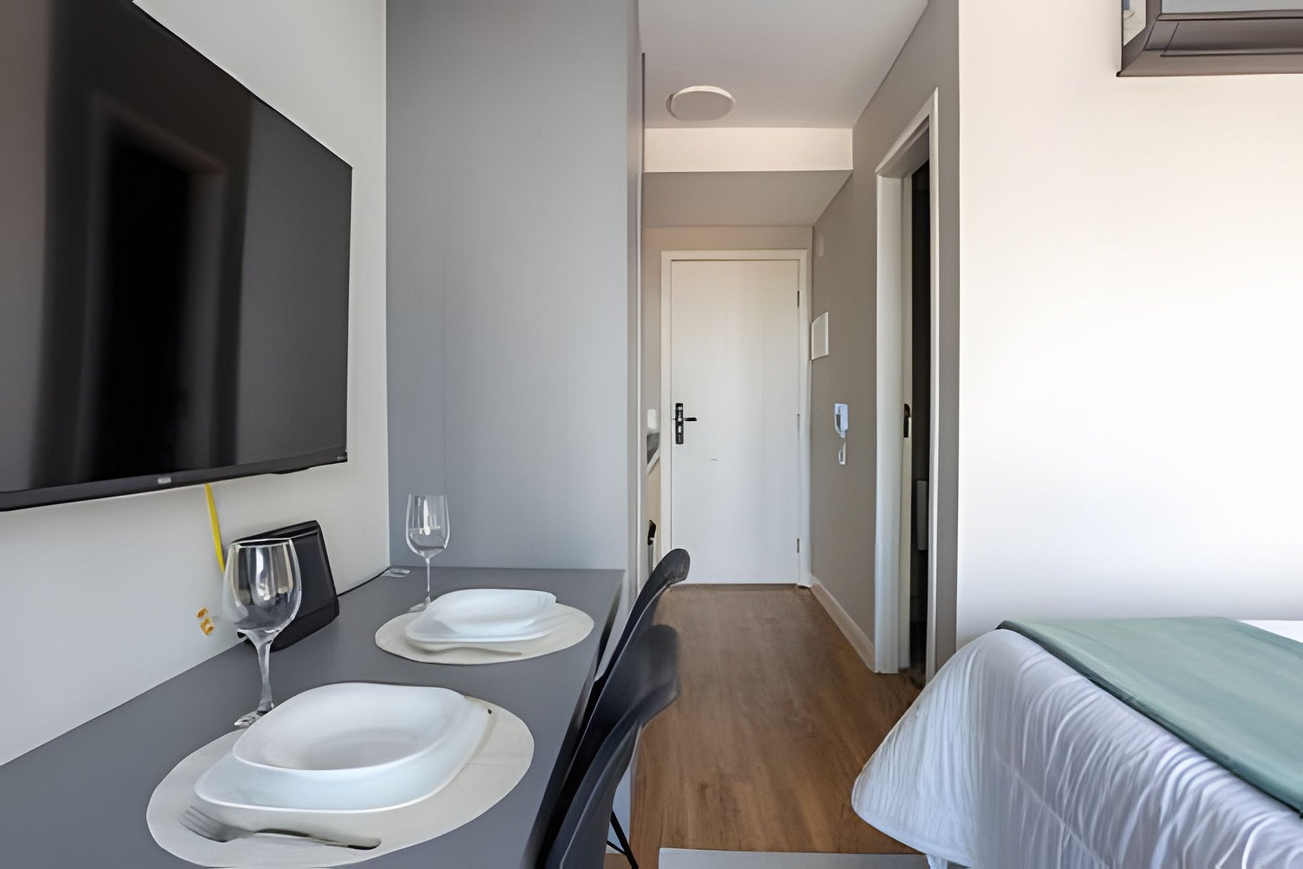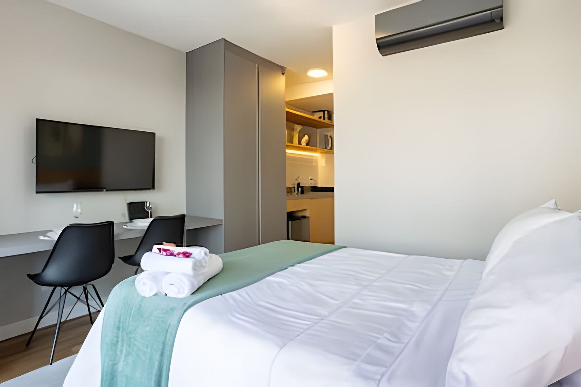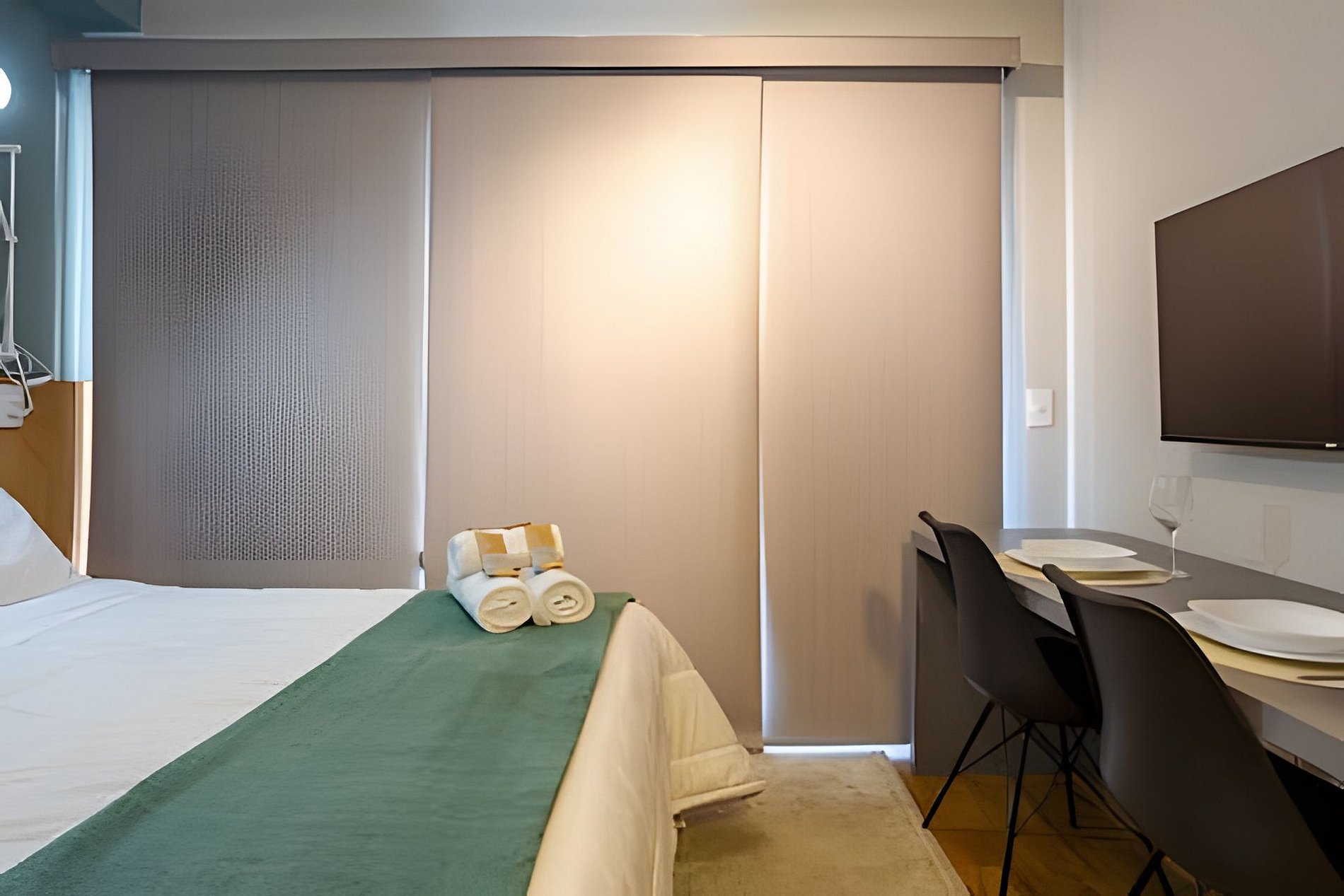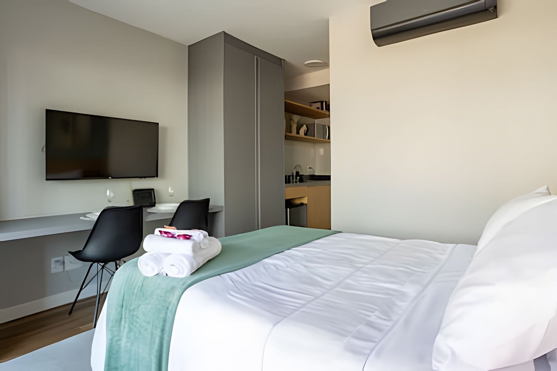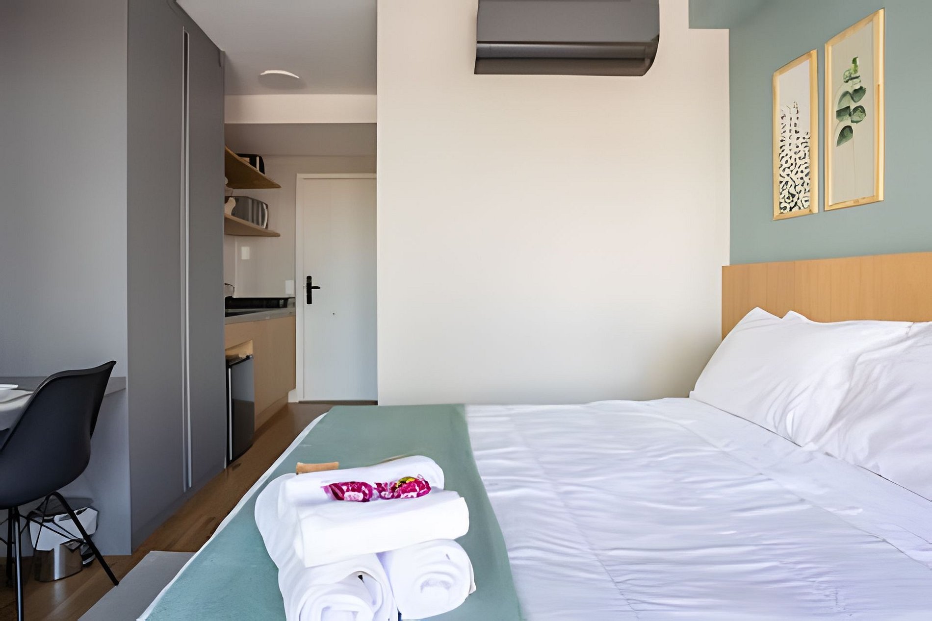 Nosso studio oferece a combinação perfeita de localização e conforto, a apenas 500m do Allianz Parque. Situado em um bairro vibrante, você estará perto de tudo que precisa, desde comércio até opções de lazer. O espaço é acolhedor, com ar-condicionado, Wi-Fi de alta velocidade e cozinha equipada. Aproveite as áreas comuns, incluindo piscina e academia. Traga suas malas e desfrute de uma estadia sem preocupações!